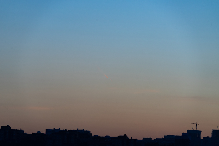 Созерцая закат заметил появление шлейфа непохожего на самолетный, показался слишком странным угол образования шлейфа, скорость, длина и тени на "облаке". Есть подозрение что метеорит или схожий с ним объект. Пока бегал и искал камеру упустил минуты 2.