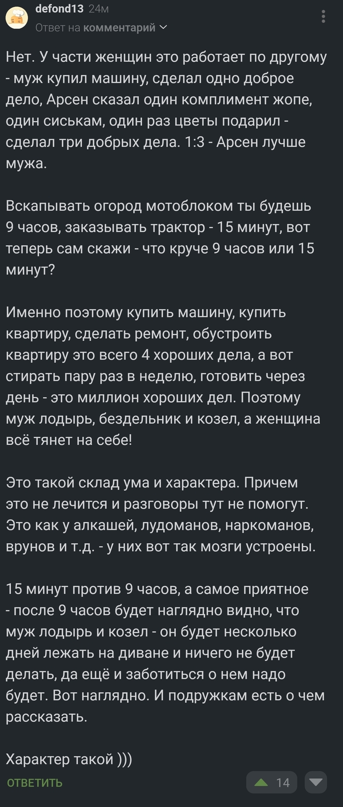 4084 Ryl0n.0b0ev 24 дня назад Противозачаточные шутки Методика оценки женщинами добрых дел2 #comment_370592301 Комментарии на Пикабу Скриншот Длиннопост Мужчины и женщины Война полов Женская логика 536 223 34 18 6 3 3 2 2 1 1 1 Ещё 7