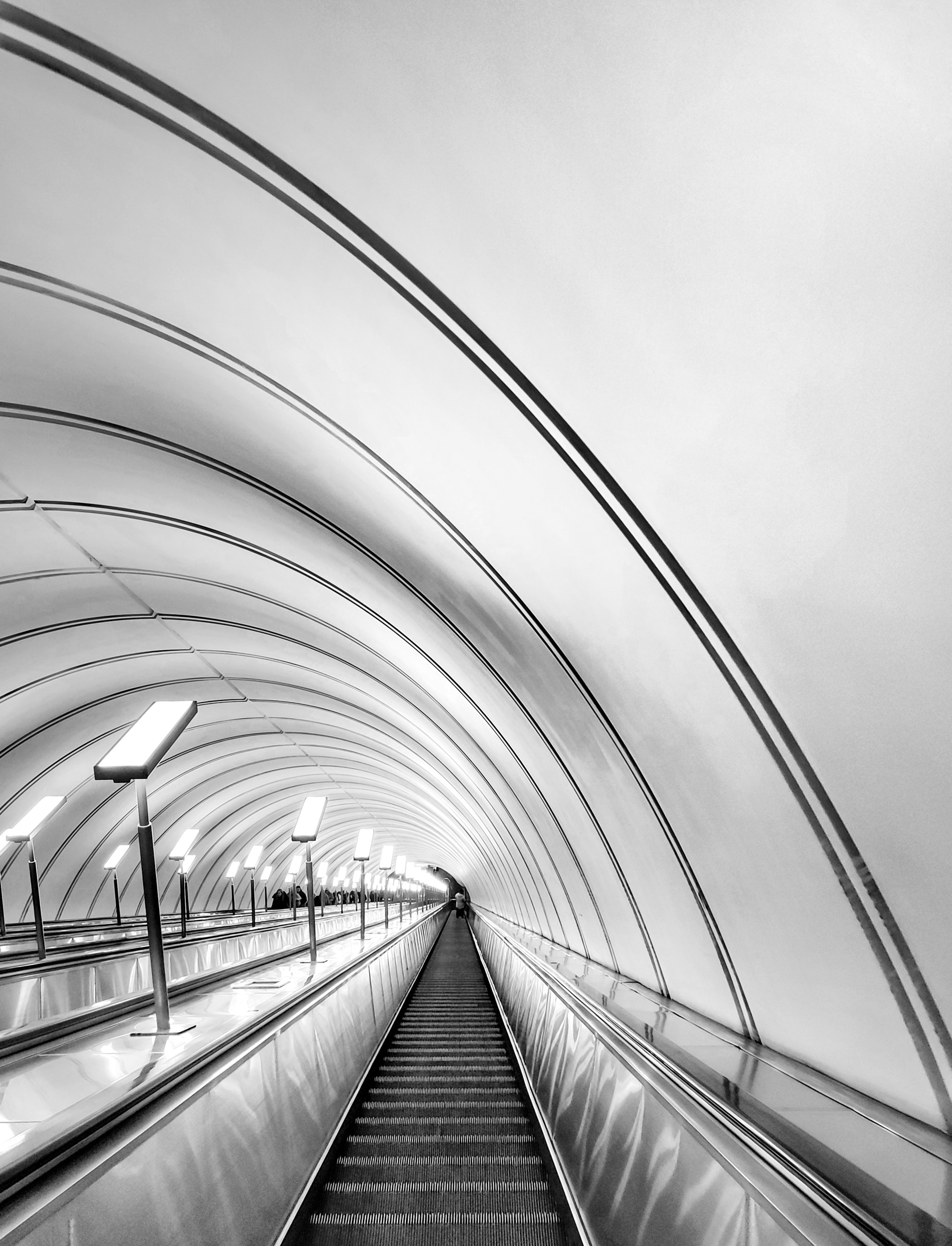 13 Grandervik Метро 9 дней назад [моё] Черно-белое Метро Парк Победы Эскалатор Фотография Ракурс Москва 1 Ещё 0