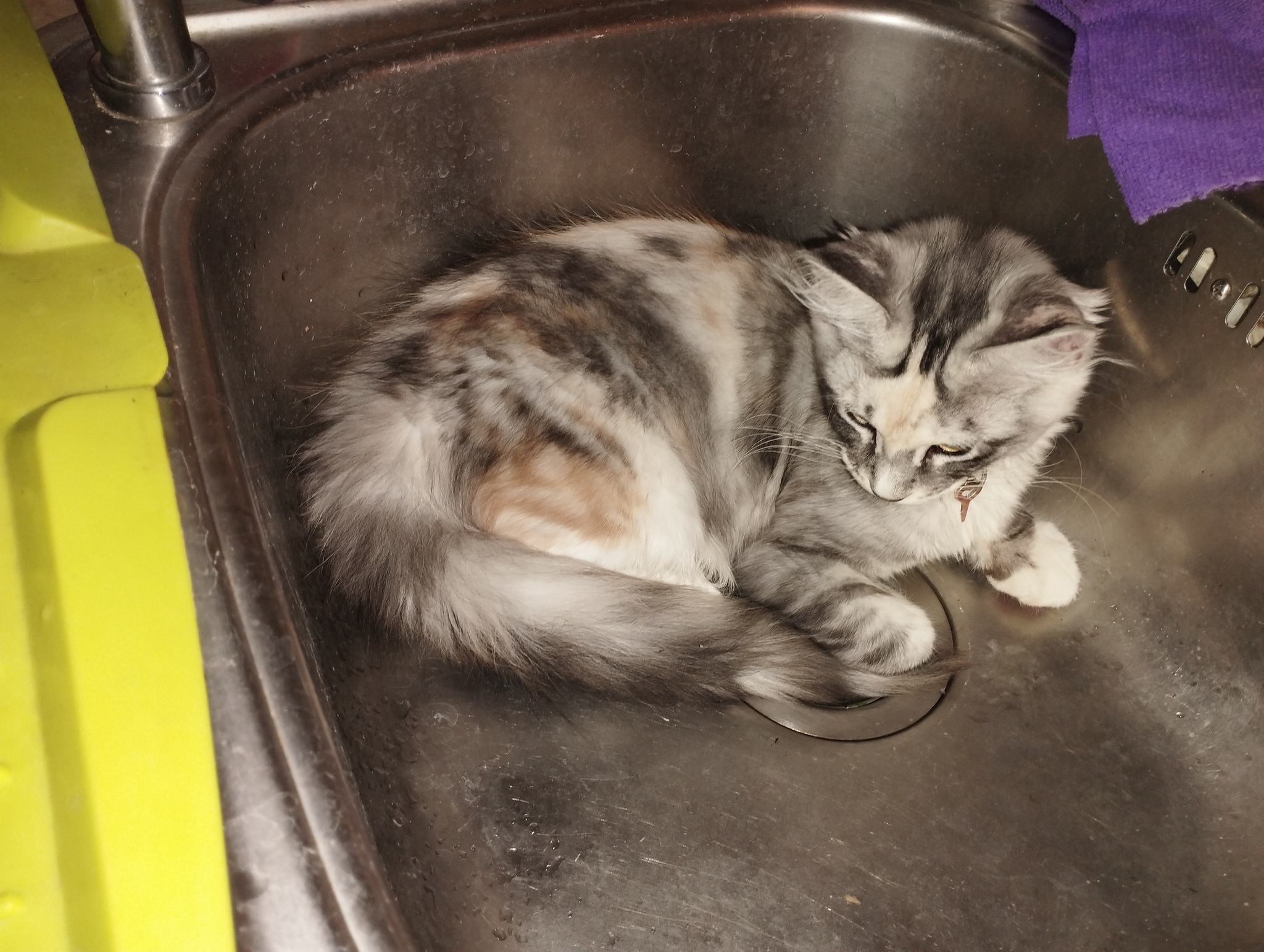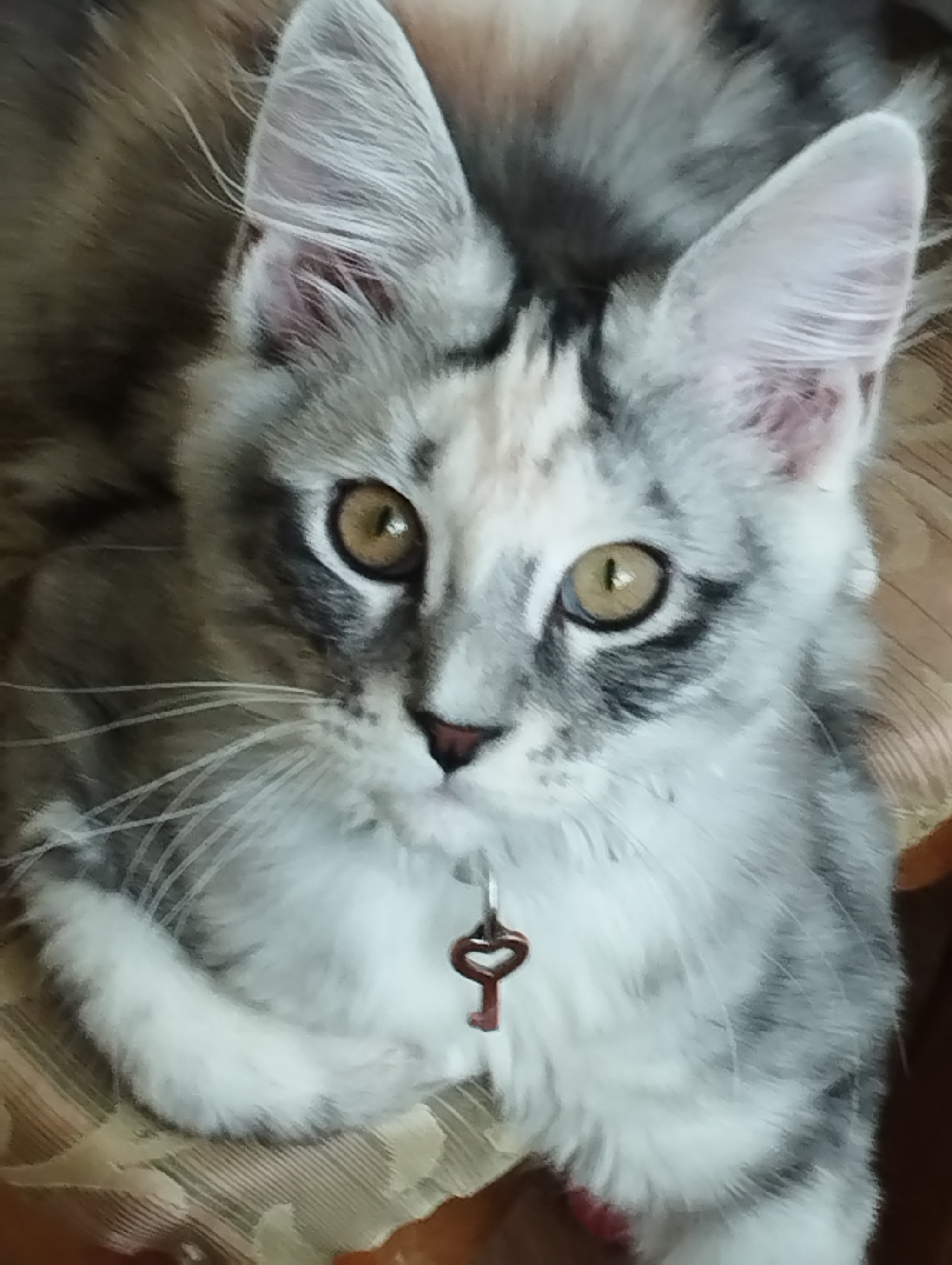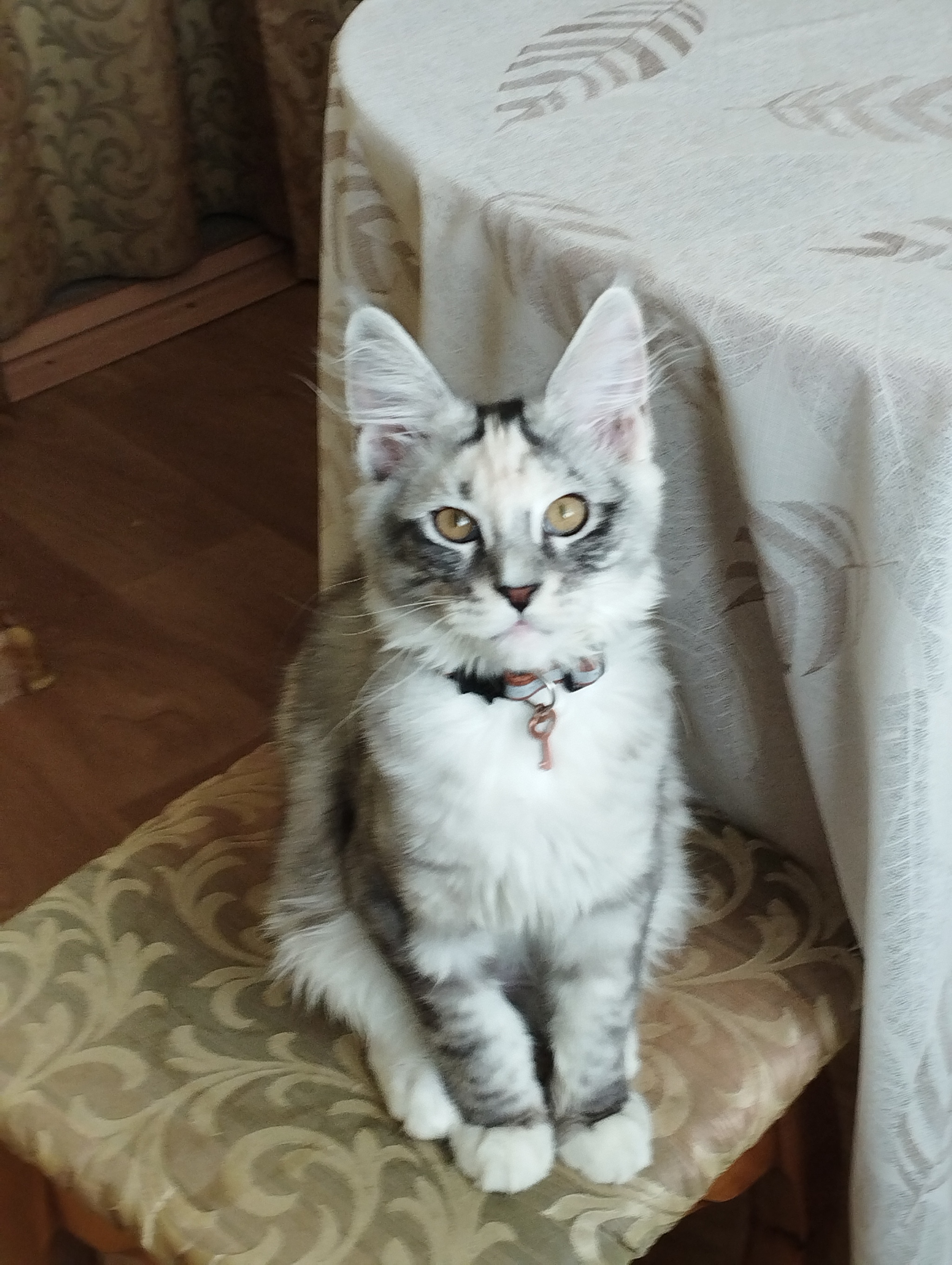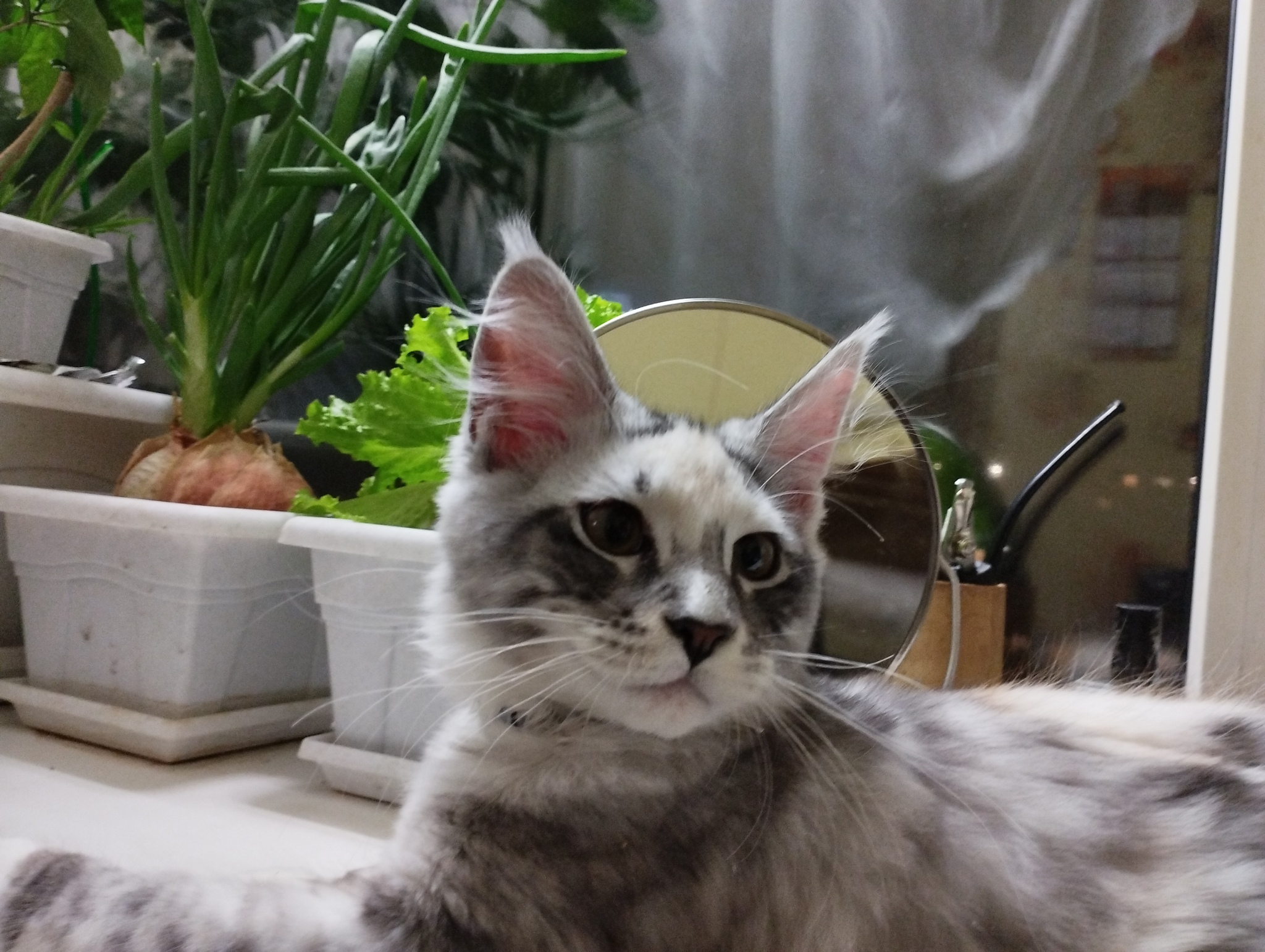40 KHTN1311 Серия Шкода Мейн-кун - Шкода 2 года назад за 10 дней + 200 грамм. Взвешивались 3 апреля - 2,8кг. Ей всего около 4 месяцев. [моё] Кот Мейн-кун Трехцветная кошка Взросление Вес Длиннопост 1 Ещё 0