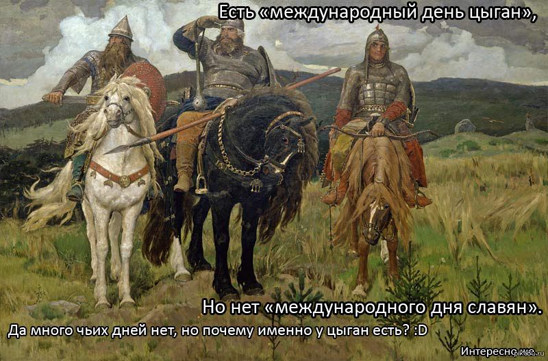 136 Gerock 11 лет назад Международный день цыган - 8 апреля Почему их никто не поздравил? Не толерантно! Картинка Три мужика и два коня Цыгане Праздник цыган Поздравление Славяне