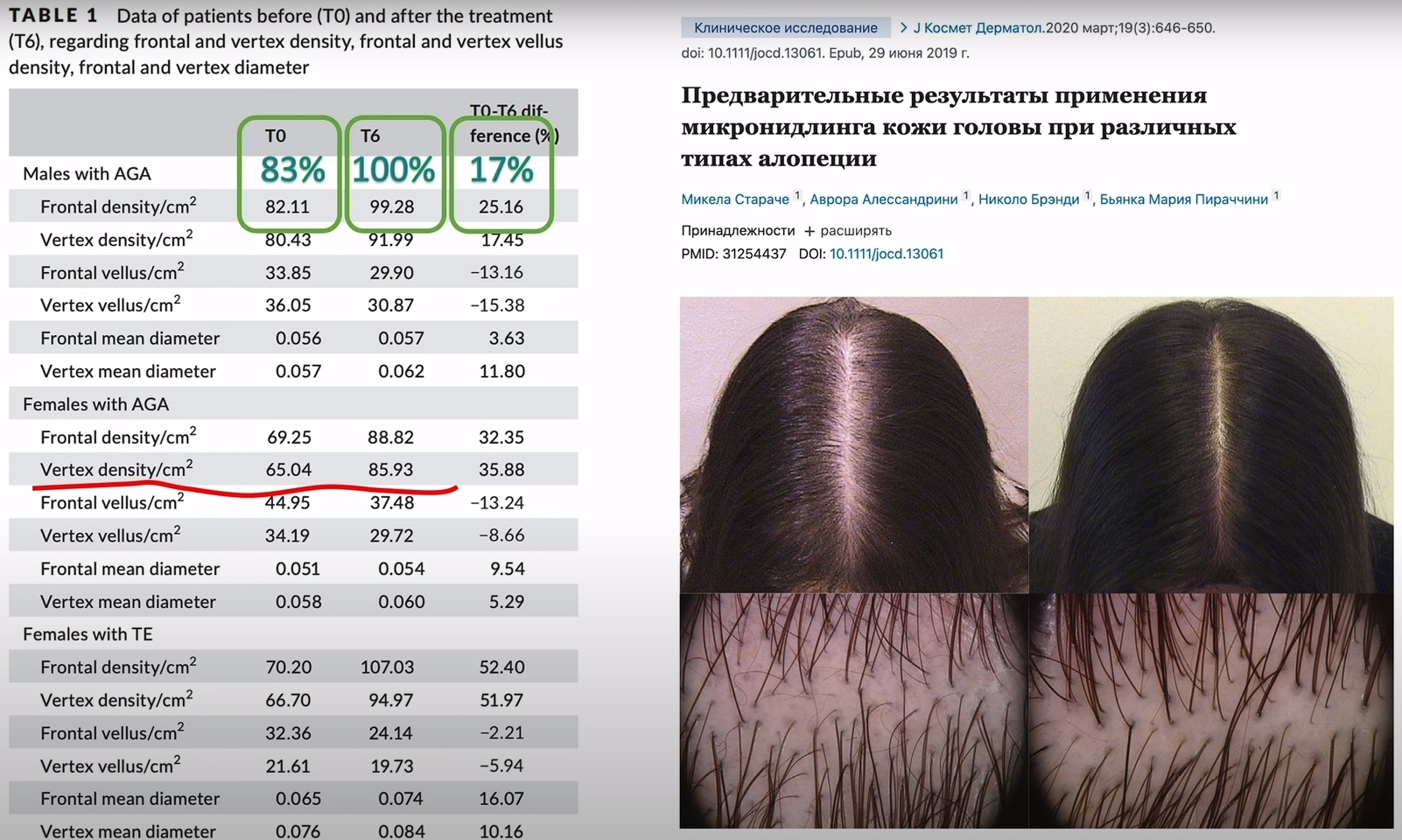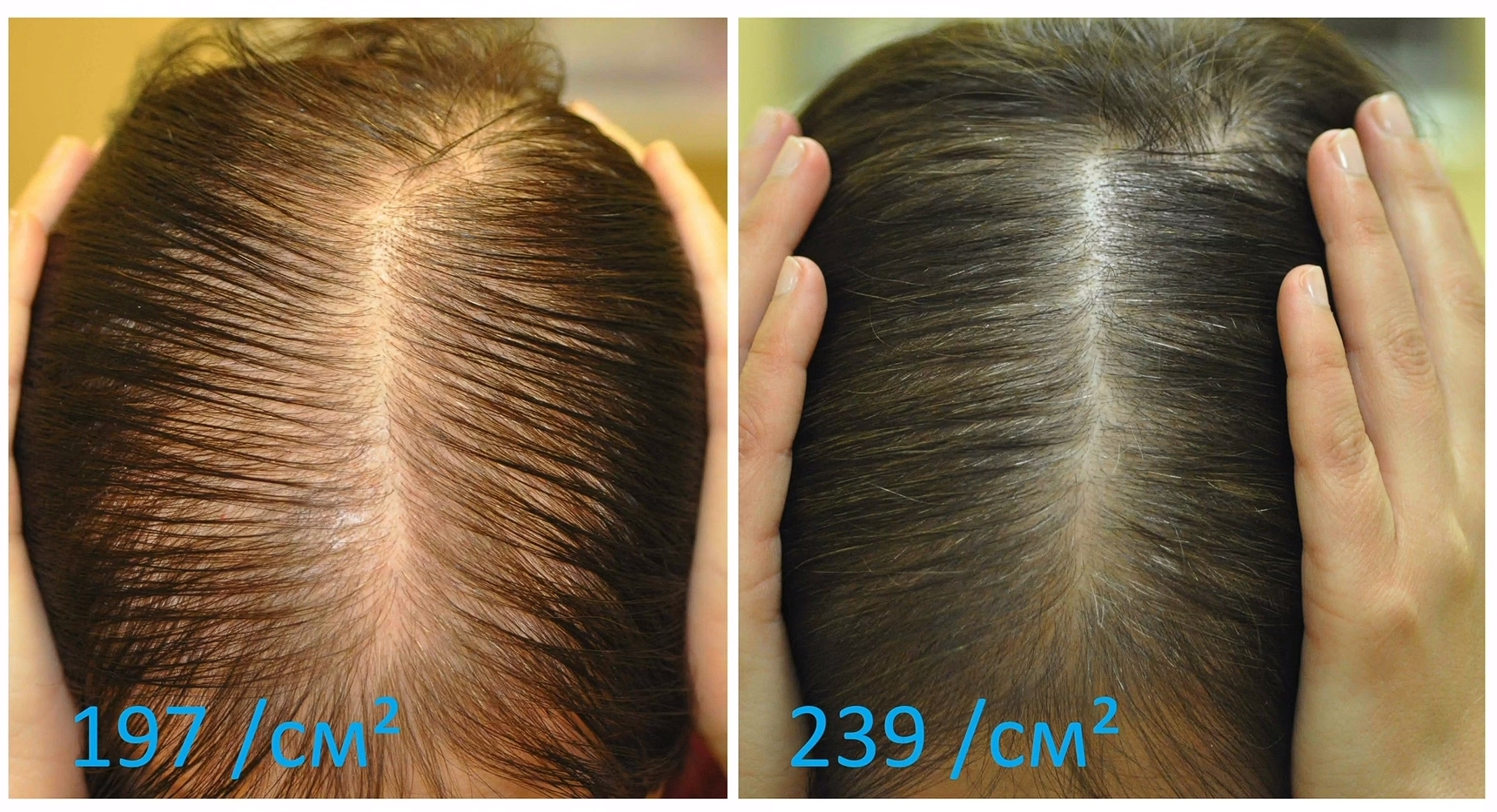 В исследовании же показывают положительный эффект от 65 в начале и заканчивая 85 в конце, мягко говоря это лысый череп)) А представленные фотографии в иследовании явно не соответсвуют цифрам. Но эффект и правда положительный.