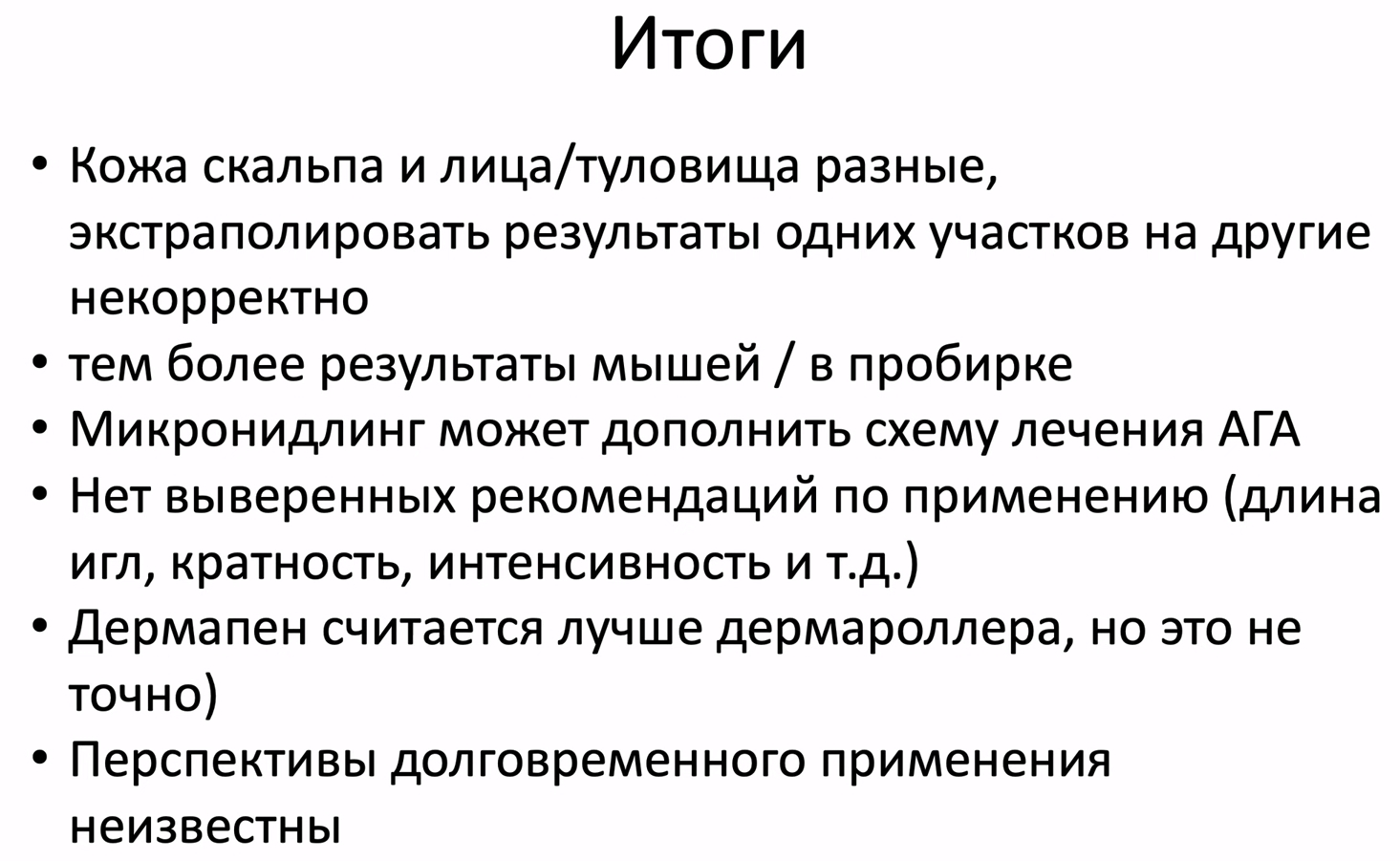 Возвращаясь к исследованиям, стоит отметить, что многие из них не отличаются высоким качеством. Например, в одном из исследований утверждается, что 12 пациентов использовали микронидлинг раз в месяц, и результаты были положительными. Однако цифры и фотографии, мягко говоря, вызывают сомнения.