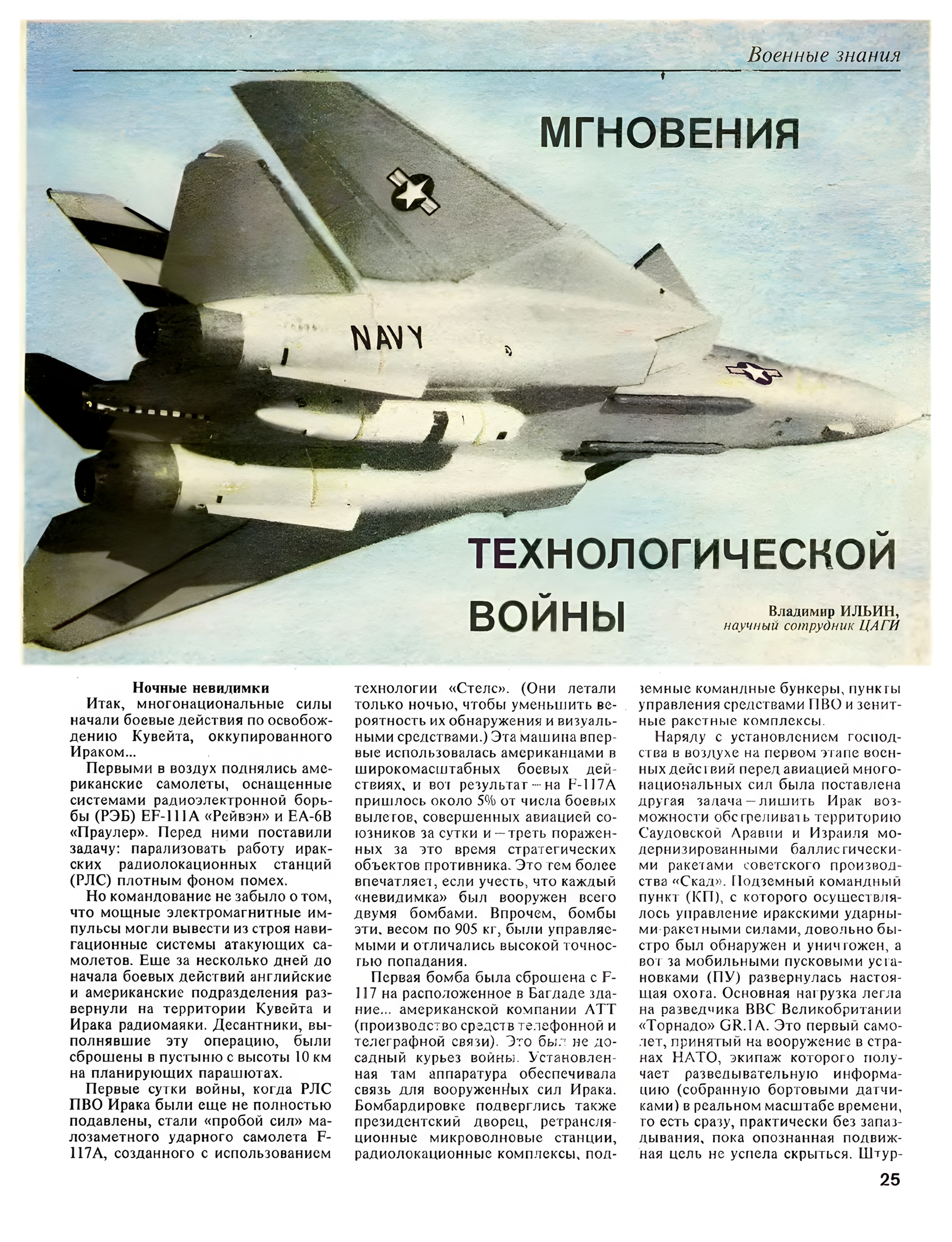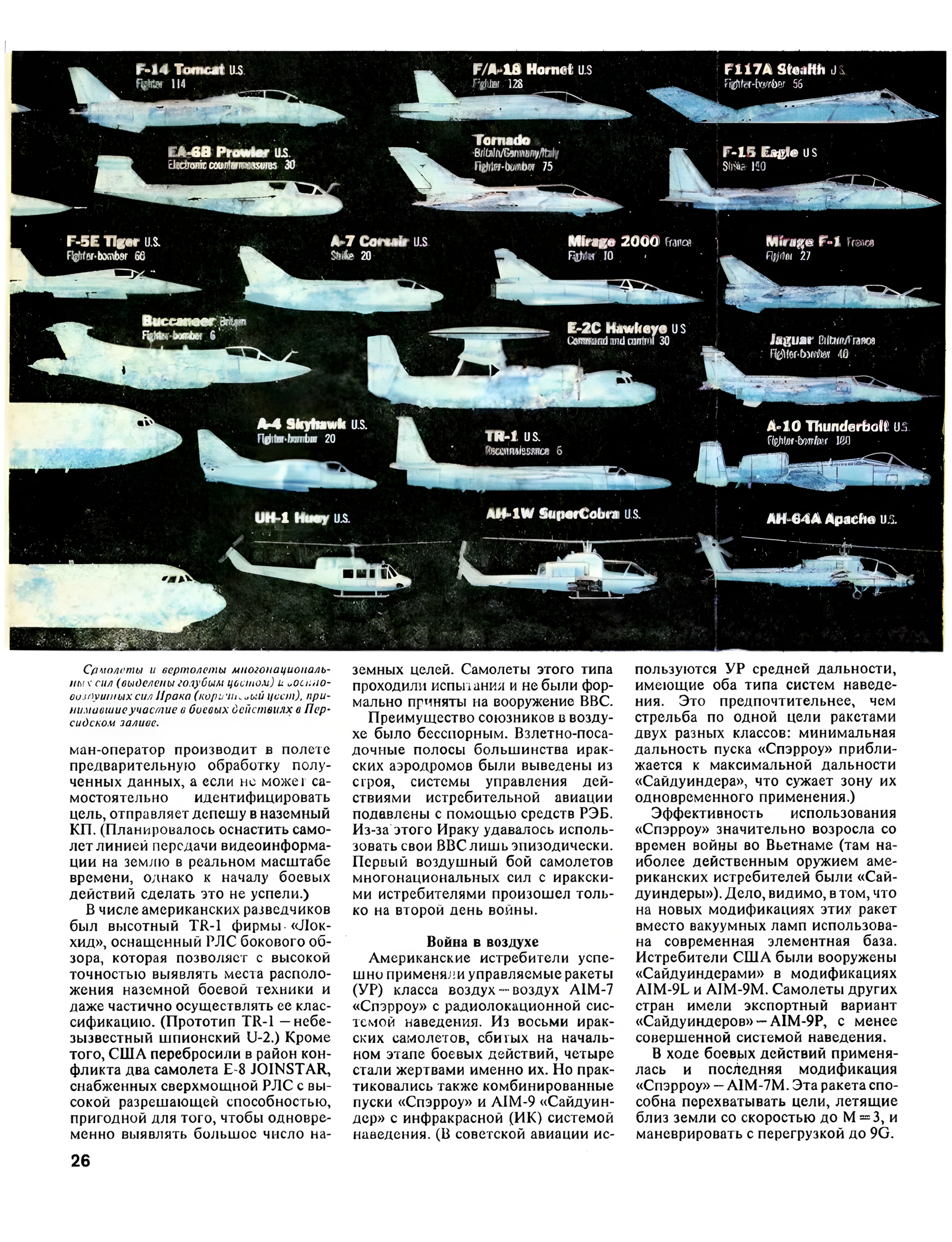 Кто помнит легендарный журнал "Техника-молодежи"? В школе, мы с пацанами, стояли в очереди в библиотеку за очередным номером "ТМ".А номер был шикарный.В N° 7 за июль 1991 года была интереснейшая статья Владимира Ильина "Мгновения технологической войны" с рисунками и фотографиями военной авиации многонациональных сил и ВВС Ирака, принимавших участие в боевых действиях в Персидском заливе в январе 1991 года.