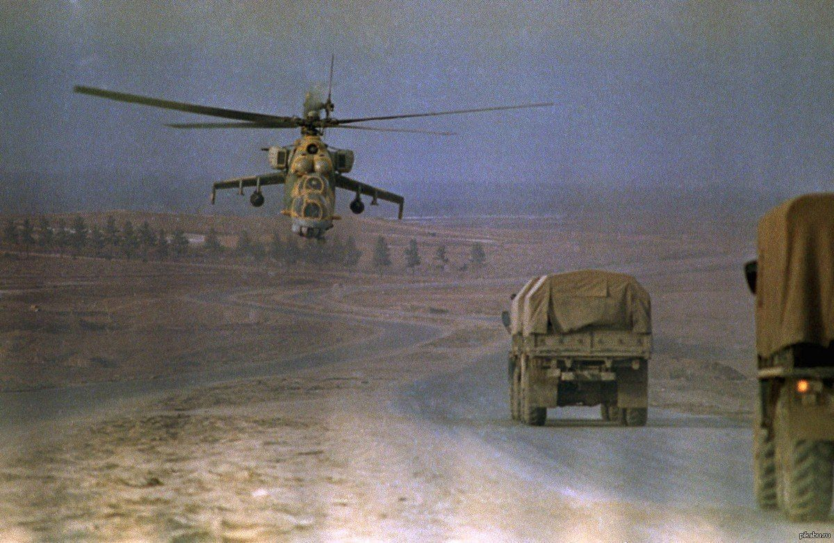 Когда стоишь на небольшом ровном возвышении, сначала возникает ощущение, что что то толкает в грудь. Затем, это ощущение поднимается и ты уже ушами начинаешь ощущать некие вибрации воздуха. Затем, по нарастающей к тебе приближается пом-пом-пом-пом, перемежаясь с свистом законцовок лопастей в воздухе. И когда тебе кажется, что уже всё, блять, хватит помкать, пора съебывать, убегать, валить нахуй с этой планеты, в этот момент появляется ОН! Длинный, как крокодил. С растопыренными руками-крыльями как….Крокодил. С злобными глазами защиты ВЗ! Со всякими пушками, НАРами и прочими непотребствами — и оно висит и на тебя смотрит, покачиваясь, как бы выбирая — куда же тебе въебать? У тебя только одно желание — вжаться в грунт и не отсвечивать.