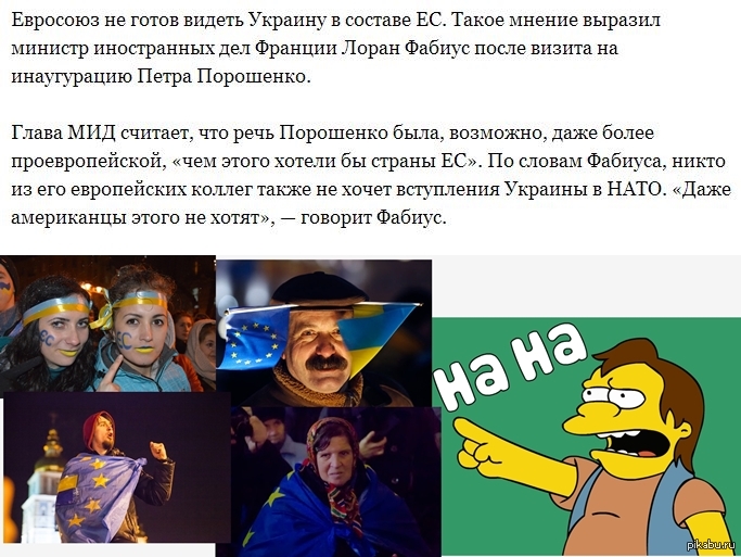 440 GenaGiena 11 лет назад МИД Франции: европейские страны не готовы видеть Украину в составе ЕС Украина Евросоюз