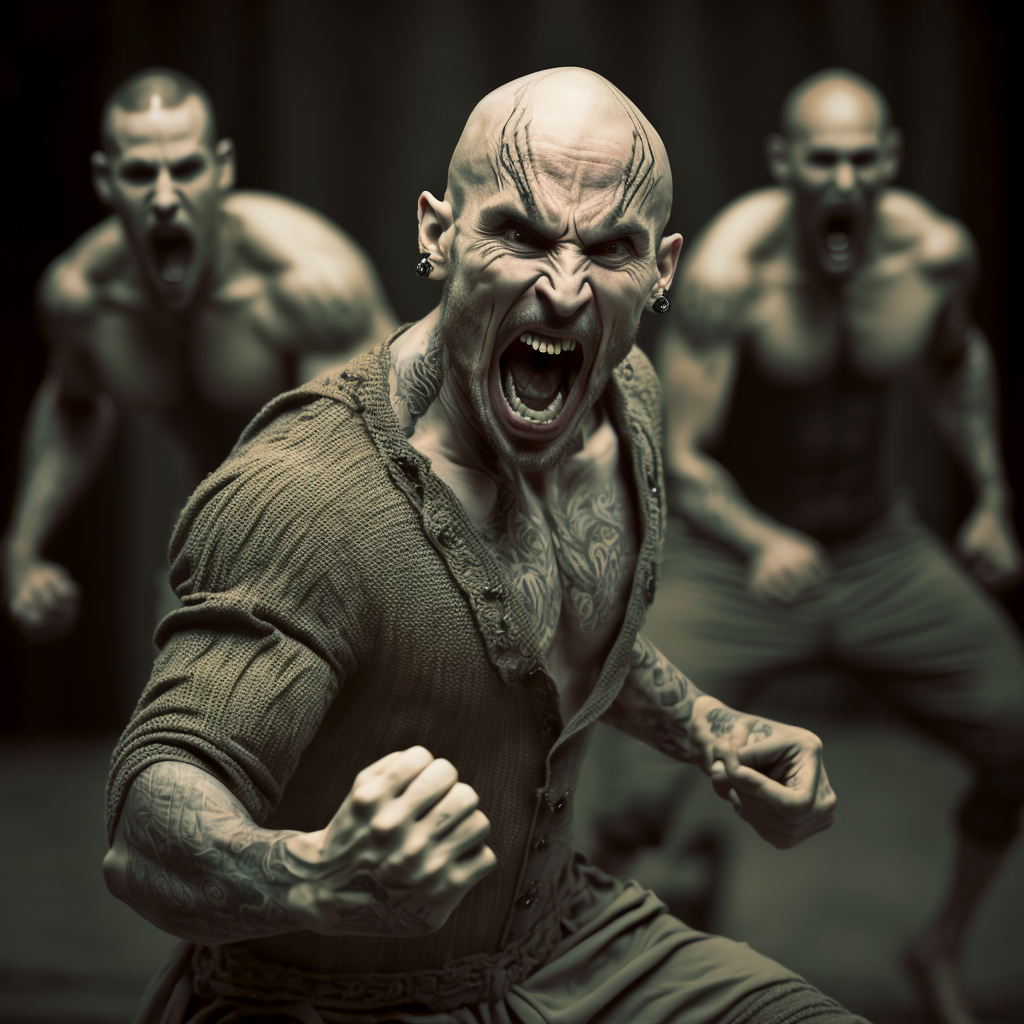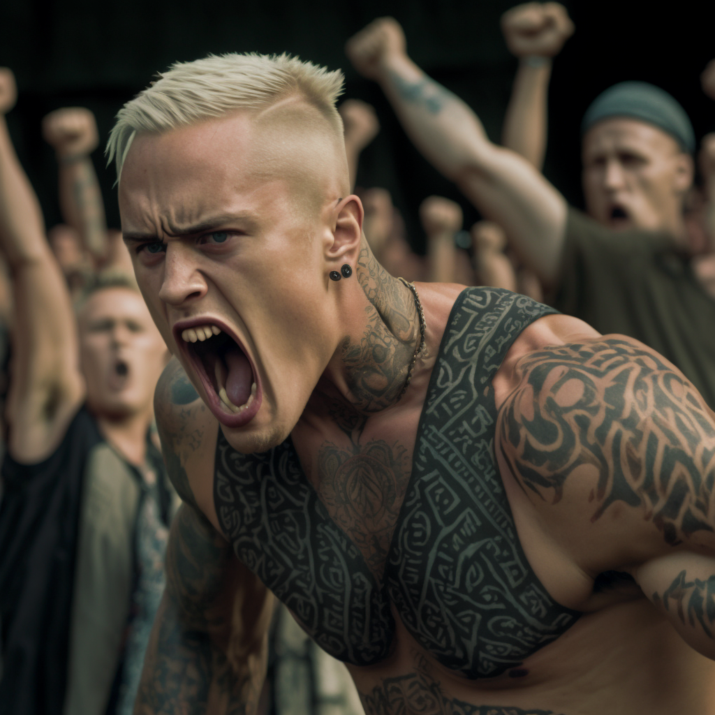 По мотивам маорийского танца Haka и банды Mongrel Mob.