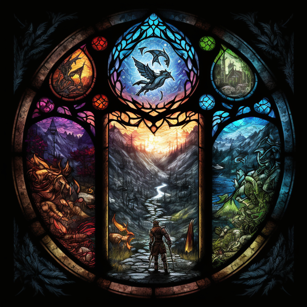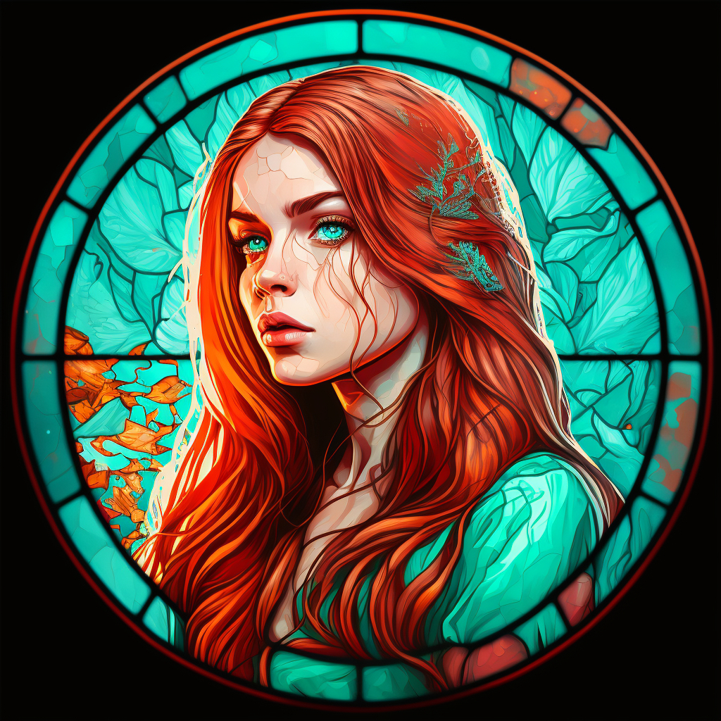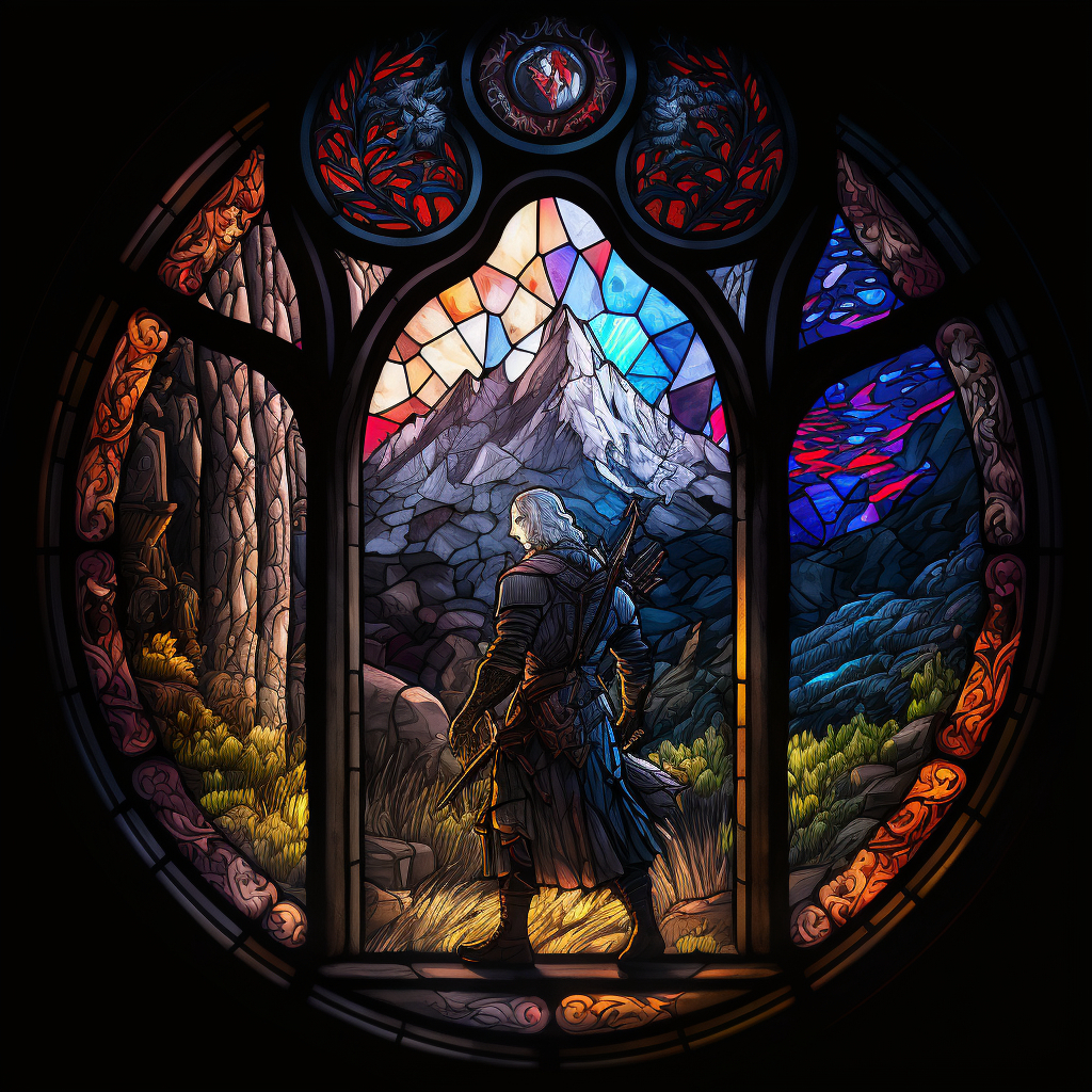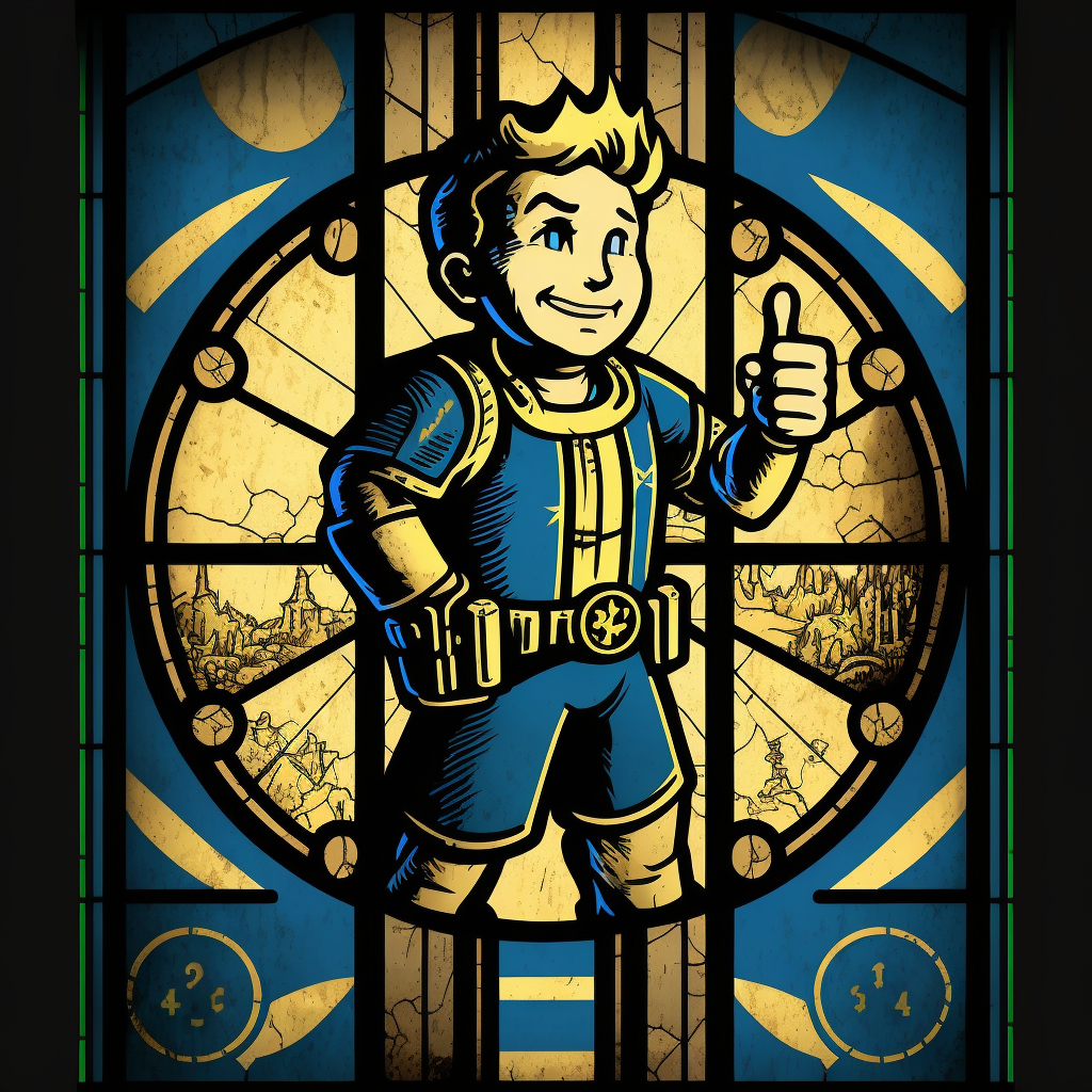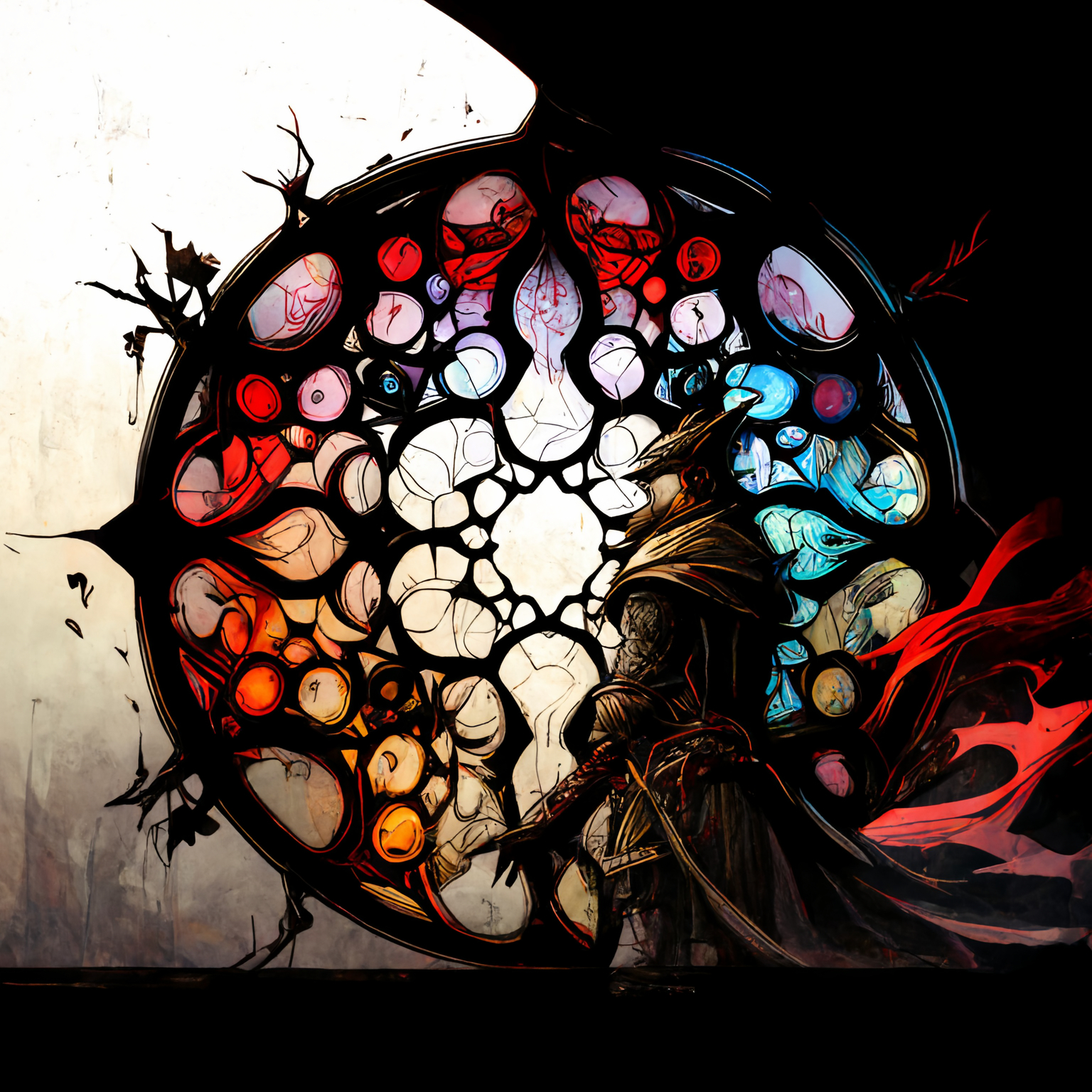 Все картинки были сгенерированы с параметром "stained glass window" на версии V4 с тематикой видеоигр.