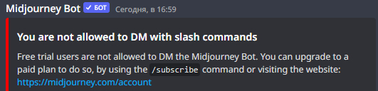 Далее кликаем на Midjourney Bot, видим следующее