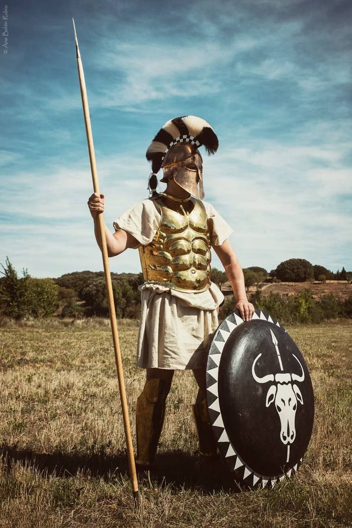 Ситуация начала изменилась только спустя несколько столетий. К примеру: греческий гоплит в бронзовой анатомической кирасе. VI-V век до н.э. Современная реконструкция.