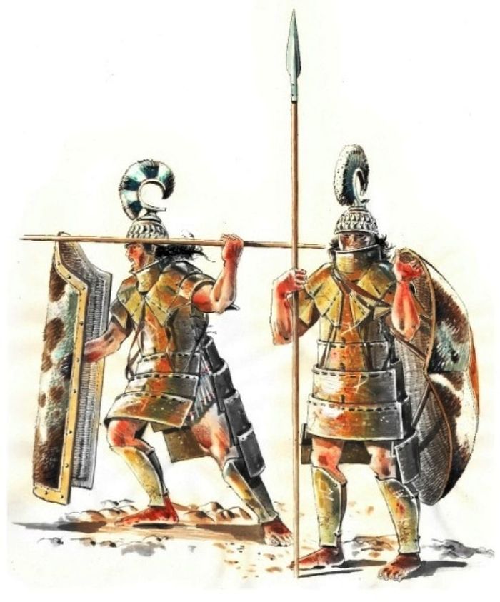 Или военную сферу. Так греческий воин времен Крито-микенской цивилизации, был облачен в бронзовый доспех. После вторжения дорийцев и деградации металлургии греческие воины на долгое время перестали носить доспехи из металла.