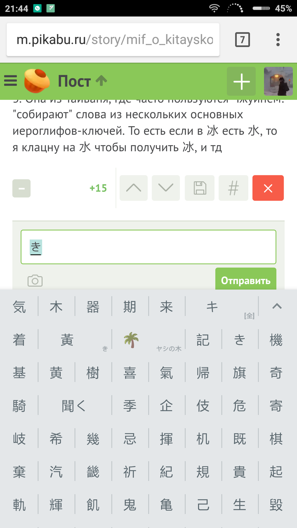 В данном случае нам нужен второй иероглиф в строке. Первый — наиболее частоиспользуемый, последний — самый редкий. При нажатии на стрелочку открывается метровый список со всеми hua. На компьютере приблизительно тоже самое.