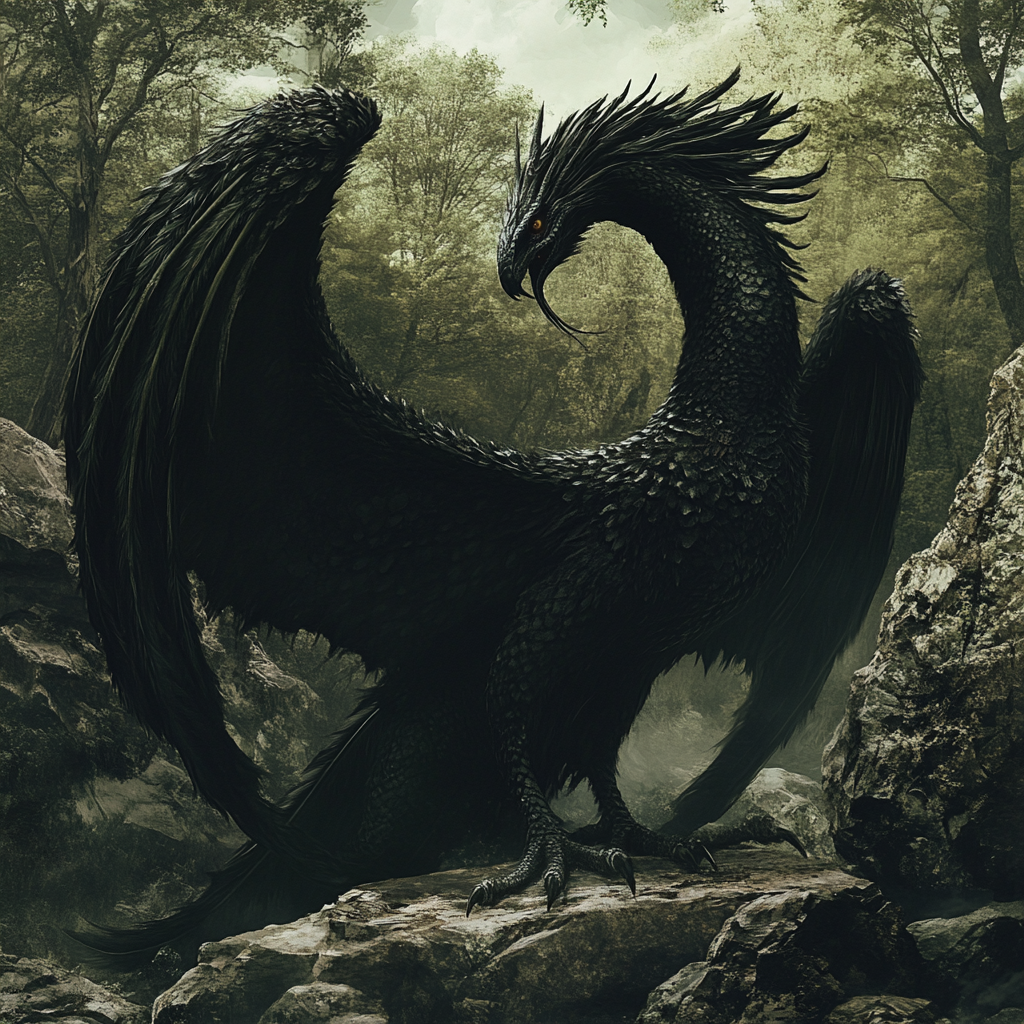 Для своей сказки я выбрала Аспида. Это чудовищный крылатый змей, который имеет птичий нос и два хобота. Часто монстр непроглядно черен. Отсюда выражение «аспидно-черный цвет». Где пролетит Аспид, те места опустошит. Живет он в каменных горах, сам, заснув, похож на скалу. Есть сказ, как один мудрец победил змея с помощью труб медных, звук которых его убивает, и раскаленных железных клещей.