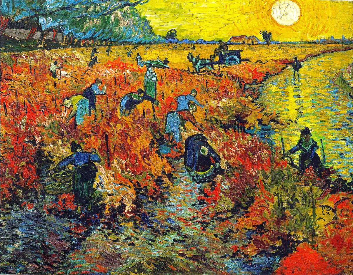 Ван Гог регулярно участвовал в престижных выставках «Салон независимых» и «Свободный театр» в Париже, и картин только по документам продал 14 штук. (На самом деле, конечно, больше, – просто сохранилось 14 кýпчих.) А почему молва приписывает честь единственной проданной Ван-Гогом картины именно «Красным виноградникам в Арле»?