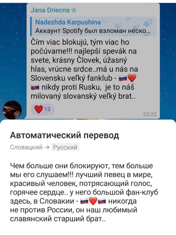 Слушаю ли его я? Поскольку уж я занялась этим вопросом, то, разумеется, прослушала всё, что только доступно. Но я вообще не люблю музыку (никакую), поэтому моё отношение довольно ровное. Есть то, что можно послушать, но есть и то, от чего пробирает ржака.