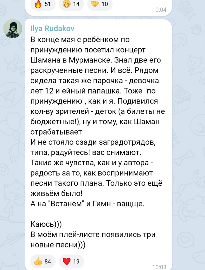 При этом я отнюдь не отрицаю, что есть и те, кому не понравилось но, во-первых, они либо не оставляют отзывы в открытом доступе, либо изначально не посещают концерты неинтересных им исполнителей; а во-вторых, речь сейчас не о них.