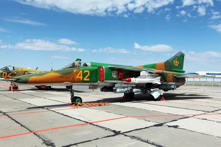 МиГ-27 - серийный истребитель-бомбардировщик для советских ВВС. Принят на вооружение в феврале 1975 года. В 1973-1977 годах на Иркутском авиазаводе изготовлено 360 самолётов.