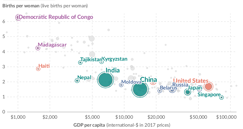 Чем больше ВВП на душу населения, тем меньше рождений. Но я не предлагаю жить хуже. Просто тратьте больше в случае чего, или инвестируйте.