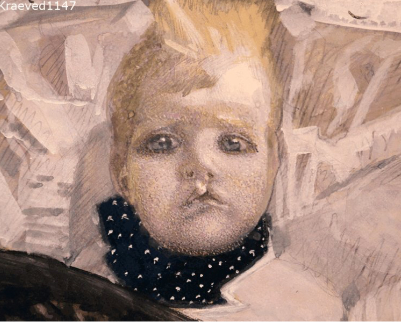 Испуганное и скорбное лицо крохотного существа, промелькнувшего метеором в этом мире, полно необычайной выразительности и какой-то недетской мудрости. В его глазах как будто пророчески запечатлена вся трагическая судьба его недолговечности.