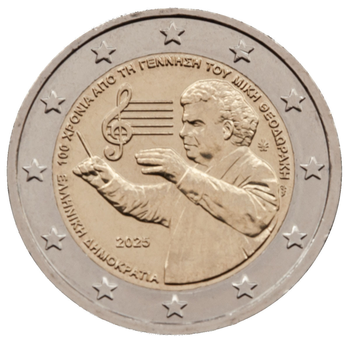 Монета 2 евро 2025 года к 100-летию со дня рождения композитора.