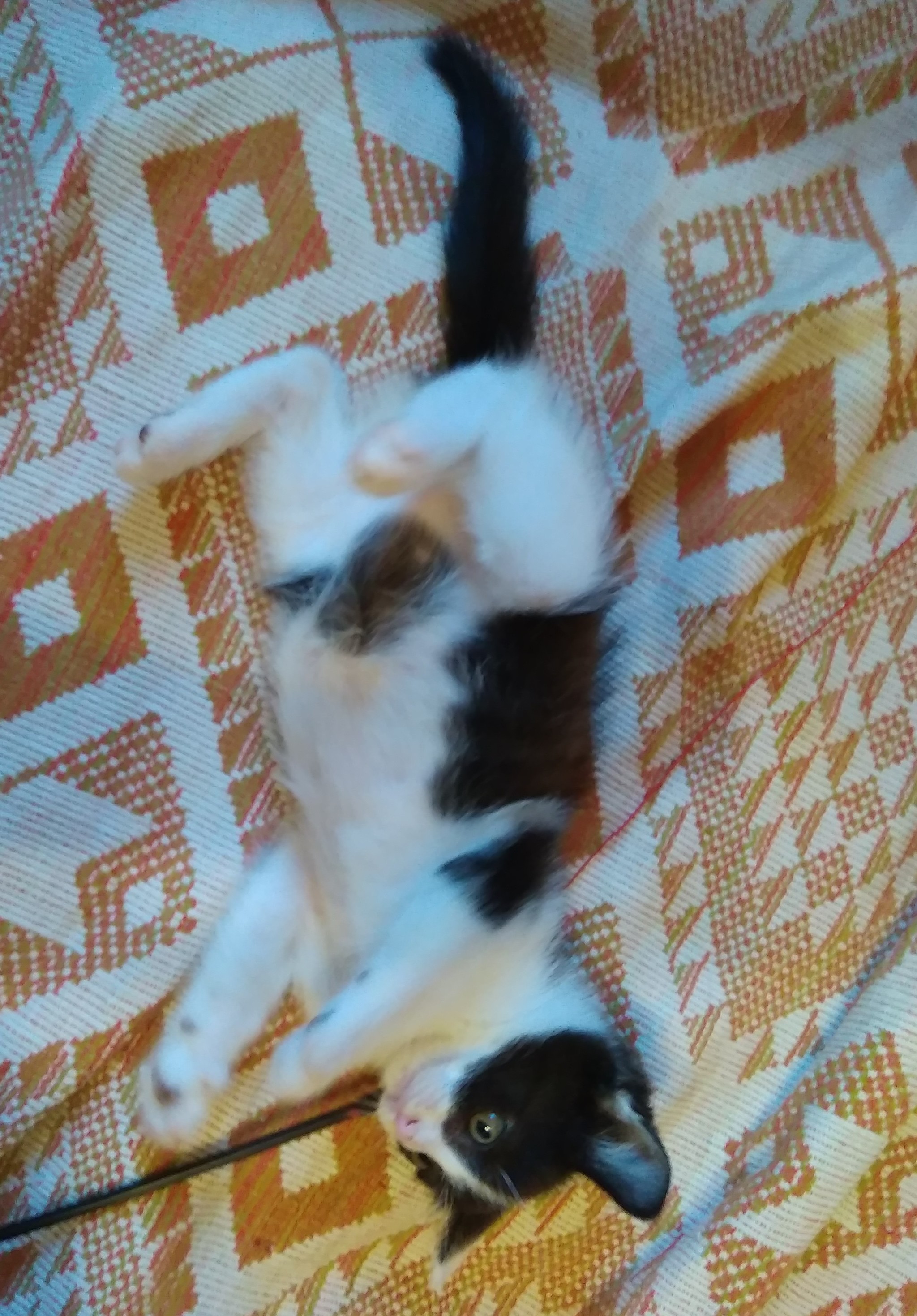 Маленький котик под кодовым именем "Микроб" ищет хорошую семью. Котика отобрали у детей, которые пытались его утопить в луже. Муж долго носился за детьми и угрожал им оторвать руки и засунуть в одно хорошо известное отверстие. Дети котика бросили, от греха подальше, и он отправился к нам мыться.