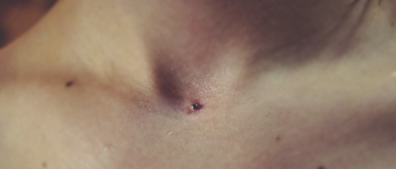 Так выглядит еще не до конца заживший микродермал бед шляпки.