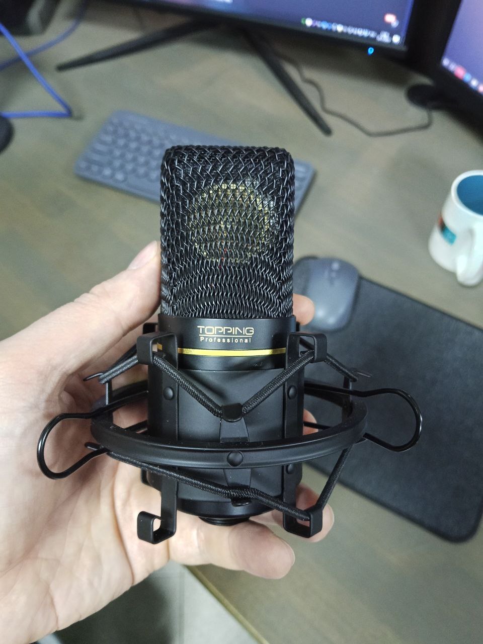 🎤 TOPPING CL101 Ценник у данного китайского товарища — 11–14 тысяч. Но знаете, что я скажу? Жаль, что за эти слова мне никто не приплачивает: это, наверное, убийца большинства популярных микрофонов. У него есть своеобразные неровности, но в целом он не уступает по многим характеристикам микрофонам за 50–100 тысяч и просто кладёт на лопатки такие популярные модели, как AT2020, Rode NT1‑A (кстати, эти две модели, по моим ощущениям, самые отвратительные из тех, на которых мне приходилось работать, но сейчас не про них), AKG P120, AKG P220, Rode NT1 Signature и многих других. Если первым микрофоном я советую брать Takstar TAK 35, то вторым, конечно же, должен стать TOPPING CL101. Он же может быть вашим верным товарищем на всём творческом пути. Ещё из положительных моментов могу отметить, что он несколько меньше «хватает» комнату. Тут также отмечу ещё одну модель, которой лично у меня в руках не было, но знаю, что звучит очень достойно, — TAKSTAR TAK 55, который, в отличие от предшественника, уже имеет полноценный конденсаторный капсюль.
