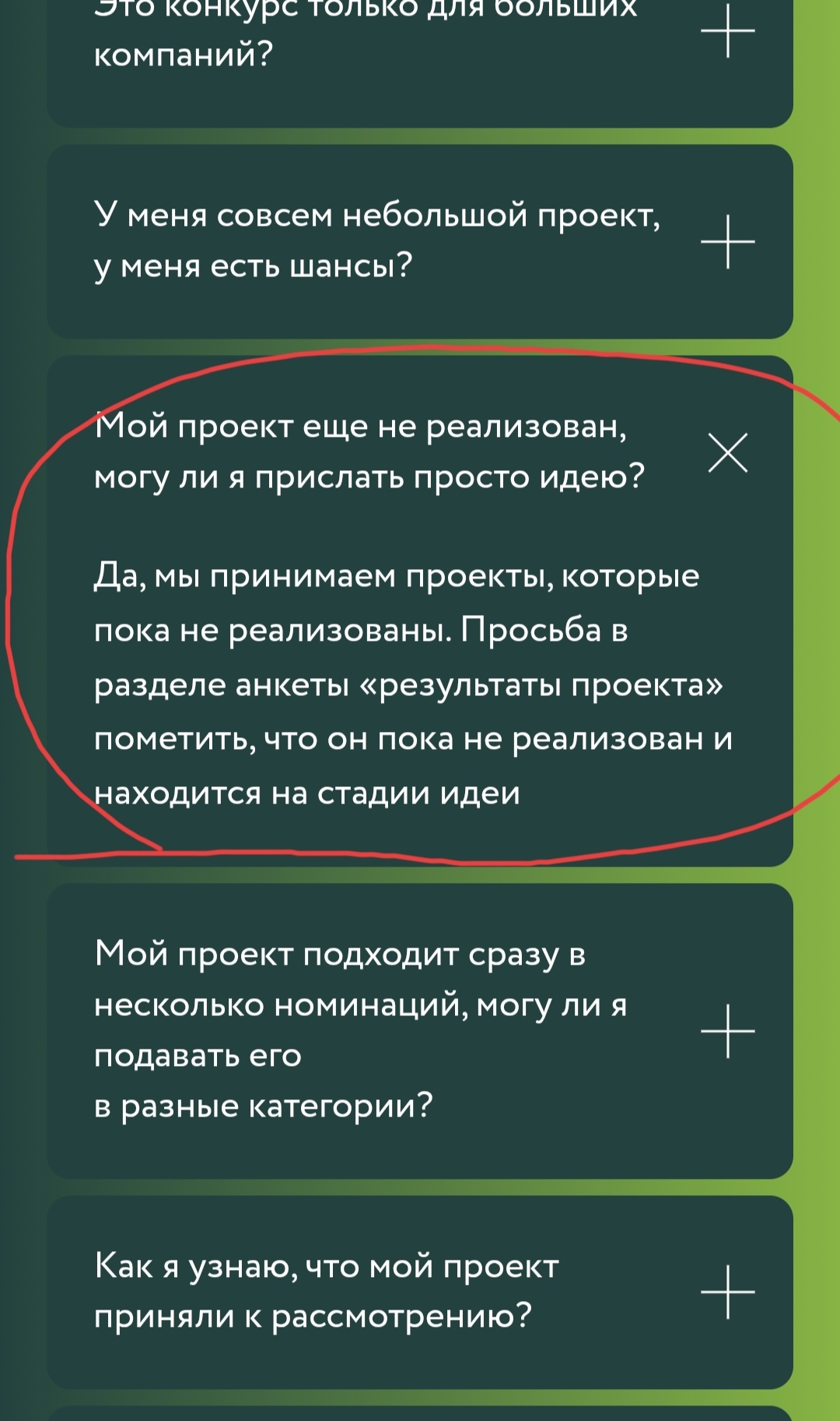 б) к тому же, победителем премии можно стать даже без конкретного результата, лишь с проектом на стадии идеи.
