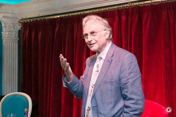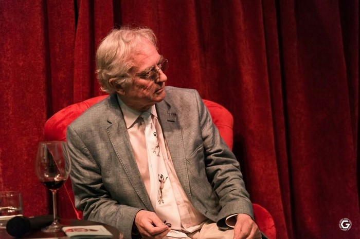 Докинз появился перед публикой с бокалом вина в руке. В свои 76 лет он бодр и подтянут, носит щеголеватые галстуки (один из них — с танцующими лемурами — ему подарила российская поклонница Ирина) и даёт всем пример образцового этикета. Отвечая на каждый вопрос, Ричард Докинз вставал с кресла, а затем снова садился. А чтобы понять вопросы, задаваемые порой на не очень хорошем английском, подходил к собеседнику и внимательно его слушал.