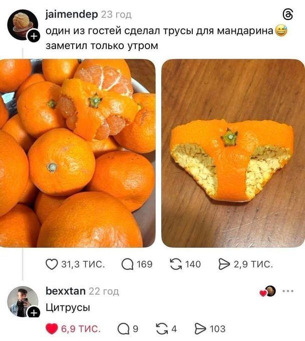 3692 terebiata Мемы. Лучшее Юмор Милота2 1 день назад Телеграм канал - https://t.me/roflemem/7349 Юмор Цитрусовые Трусы Telegram (ссылка) Комментарии Threads Игра слов Мандарины Скриншот 398 38 9 5 2 Ещё 0
