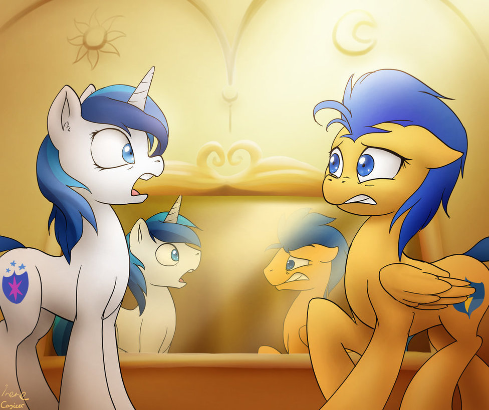 38 Courier5995 My Little Pony Милые кобылки 7 лет назад - Эй, мы не кобылки!- Чем докажете?P.S. Это арт к англоязычному фанфику My Little Pony Shining Armor Flash Sentry Правило 63
