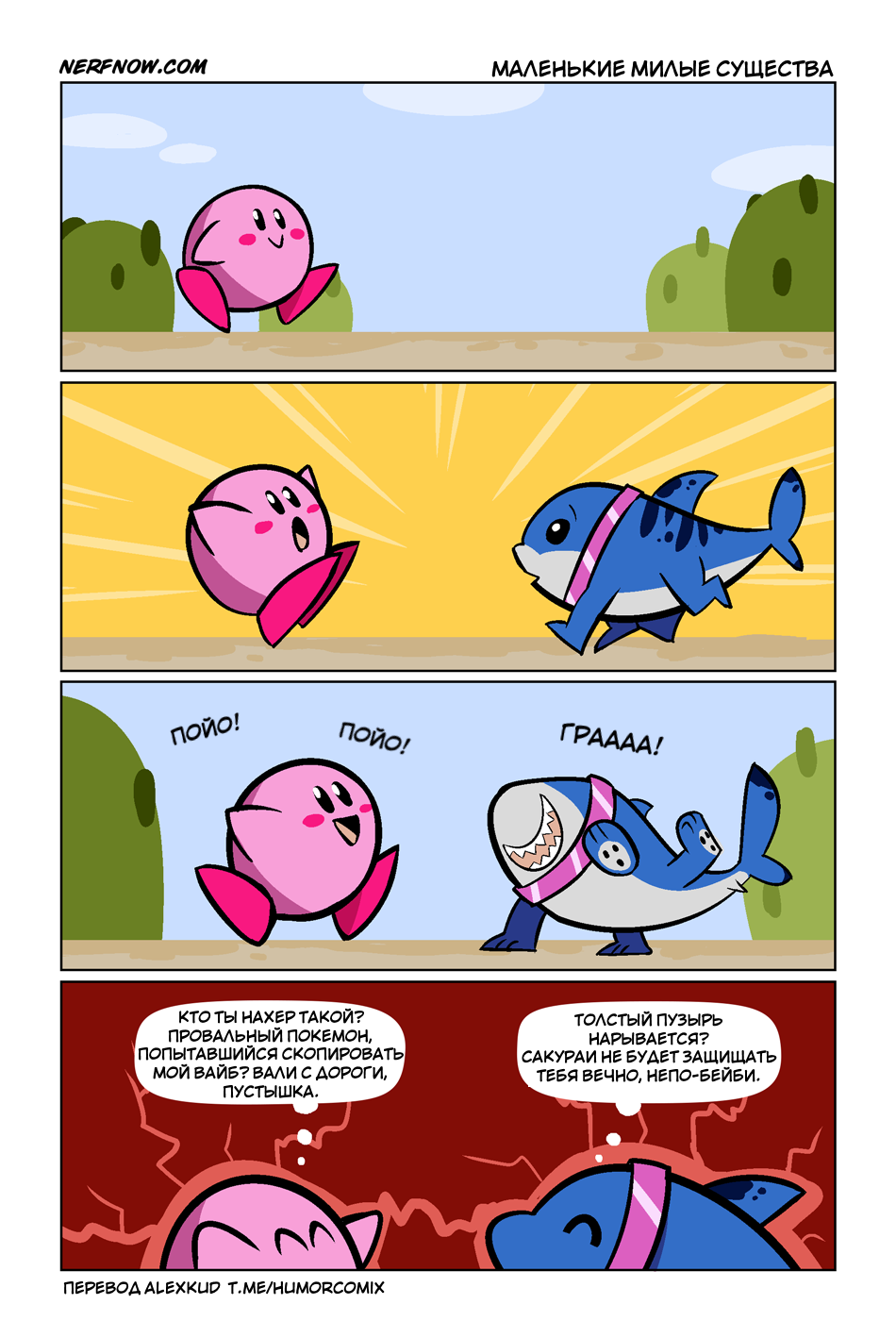 Комментарий автора NerfNow: Я уверен, что кто-то скажет, что у Джеффа нет шансов против Кирби, а я просто отмечу, что Джефф съел и Камни Бесконечности, и Космический куб. По шкале силы он не слабак.