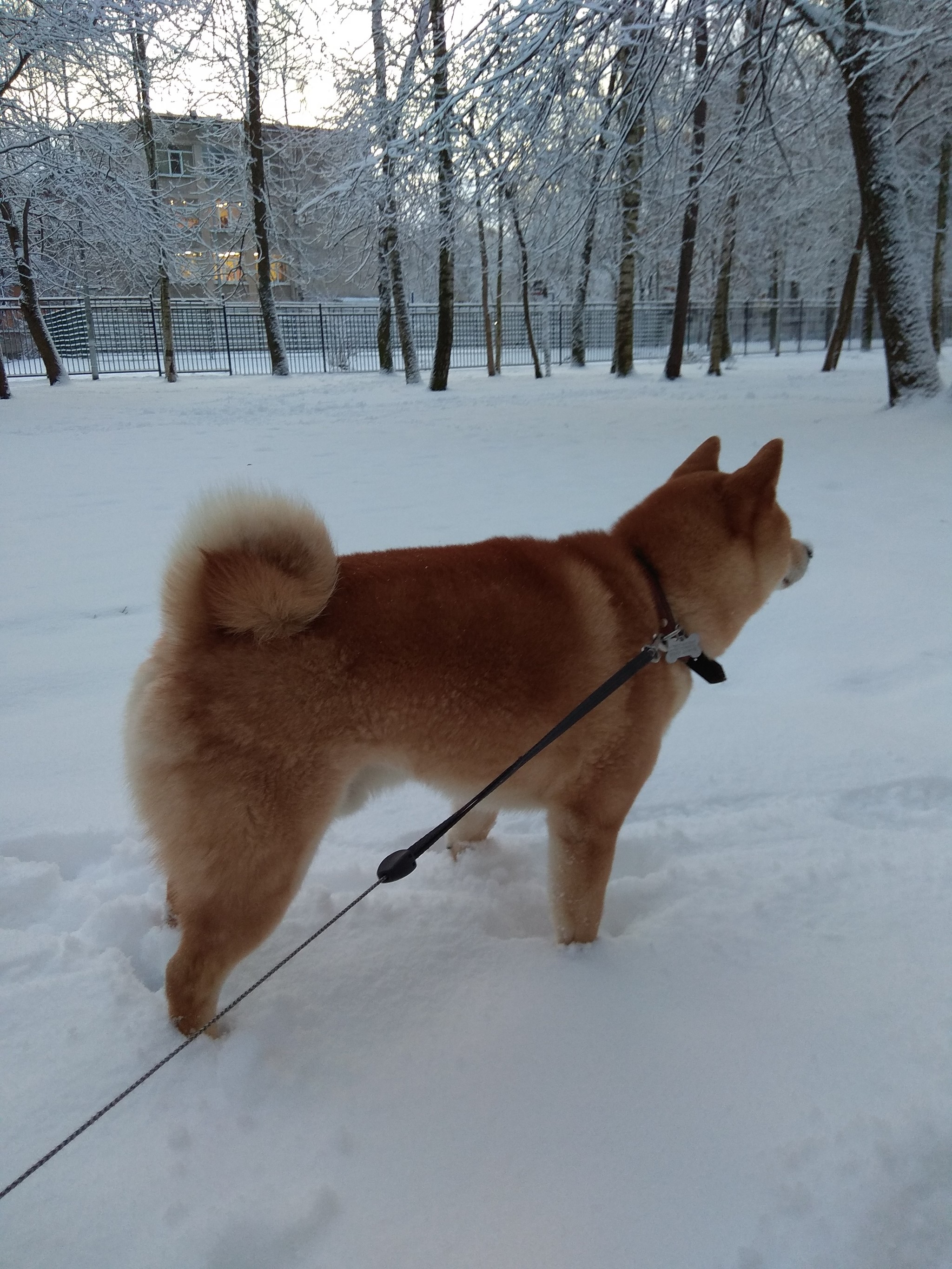 Отважные шибы - малыши гордо преодолевают препятствия в виде первого снега на утренней прогулке, без колебаний тяпая его своими лапками!