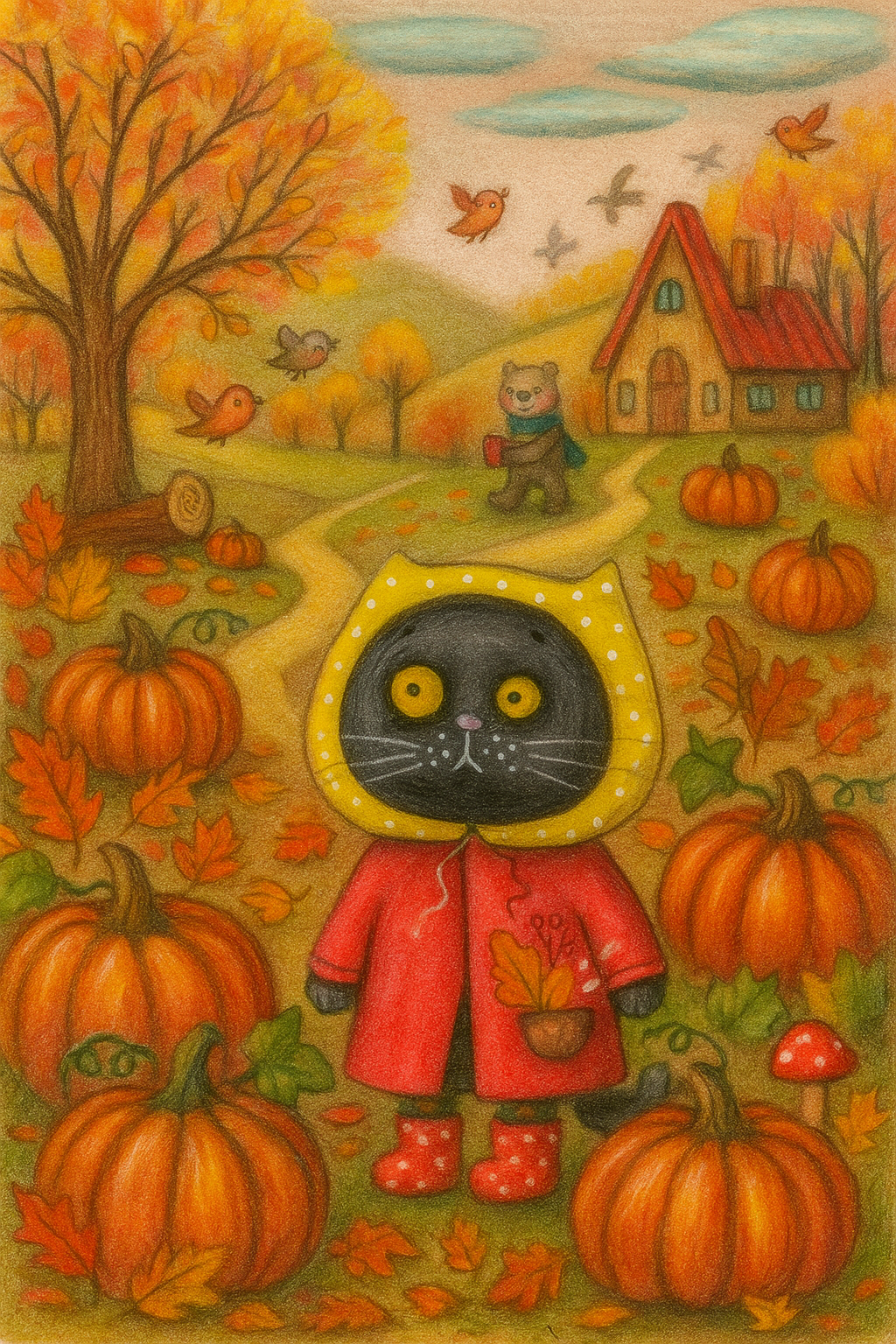 Моя авторская работа с мотивами осени. (Гуашь и масляная пастель). Покрытие художественный лак.