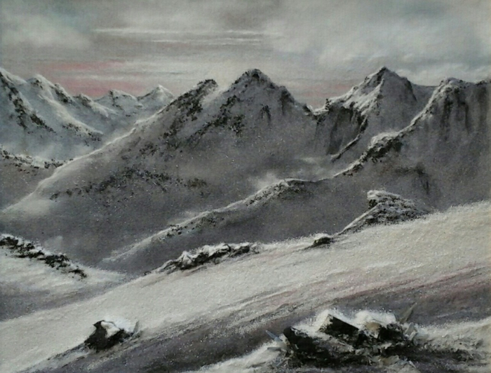 А первую картину из каменной крошки сделала Людмила Сазыкина. Она освоила в Геологическом институте Кольского филиала АН СССР профессию геолога. В городе Апатиты, который зародился и вырос на ее глазах, стала художником.