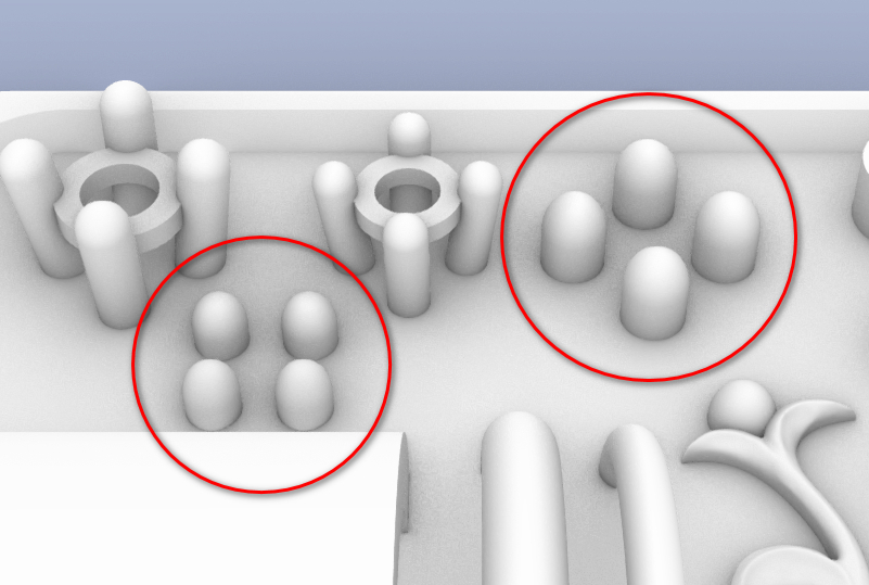 Размеры в некоторых местах практически на пределе способностей принтеров . После тестовой печати, внимательно рассматриваем эти касты. Часто их вообще не бывает. Если время засветки маленькое их просто отрывает при подъёме платформы.