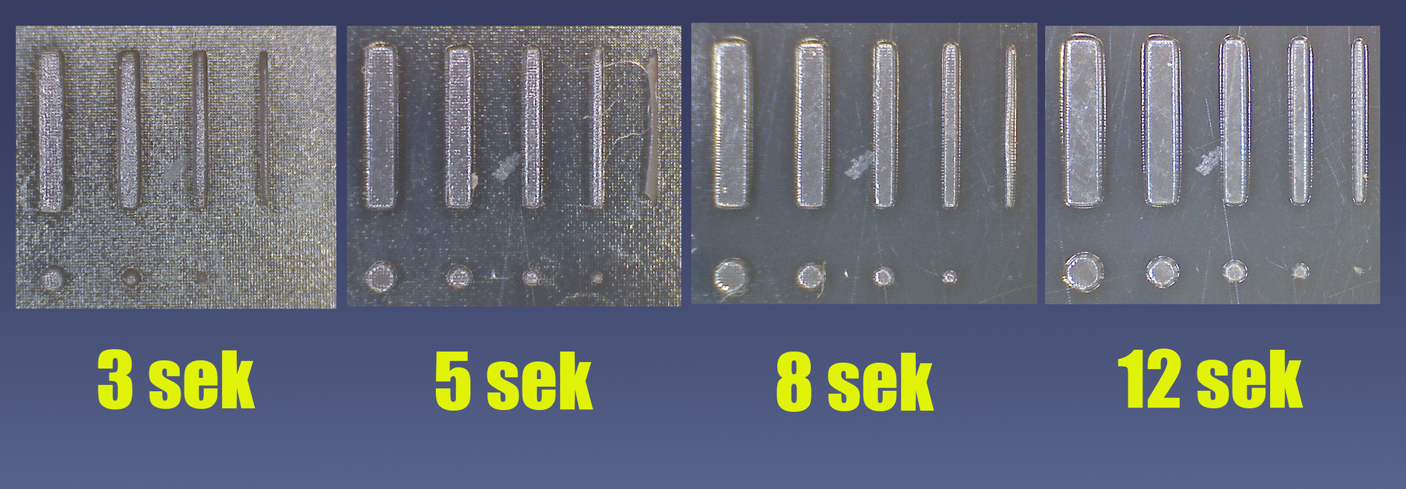 При минимальном расходе полимера за два, три раза можно получить достаточно точное значение времени засветки слоя.