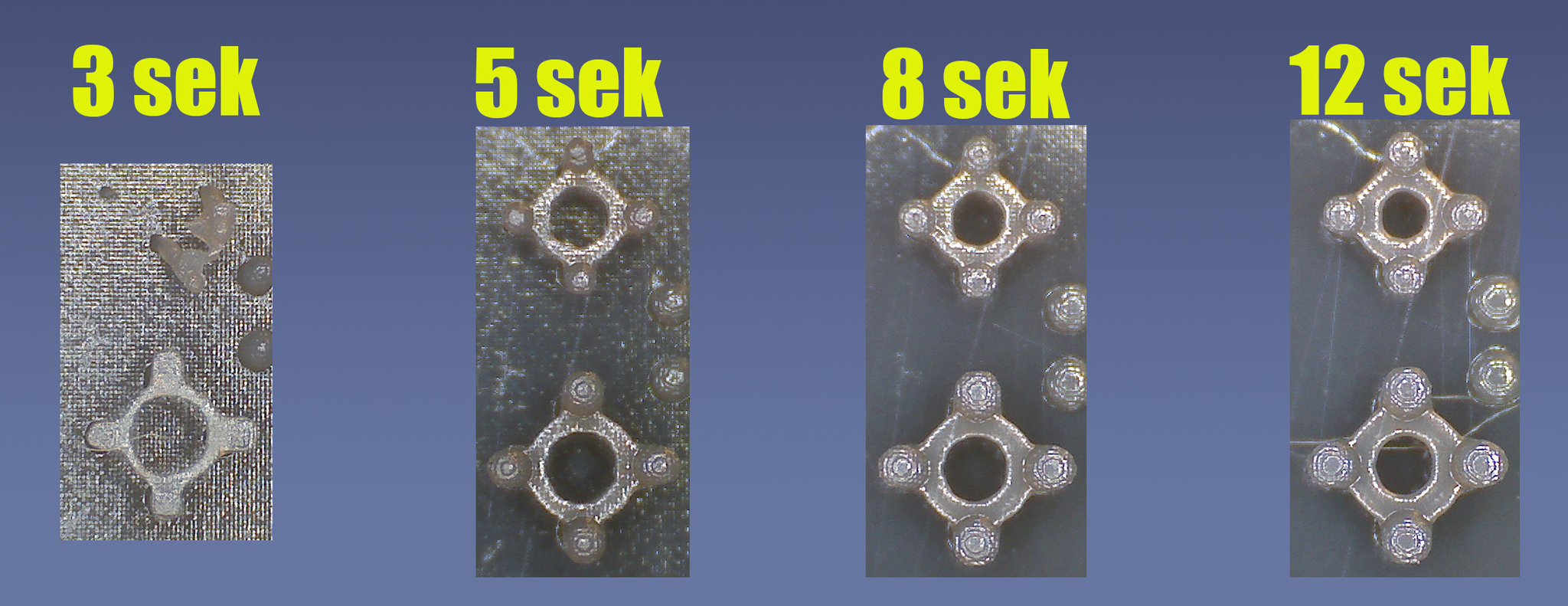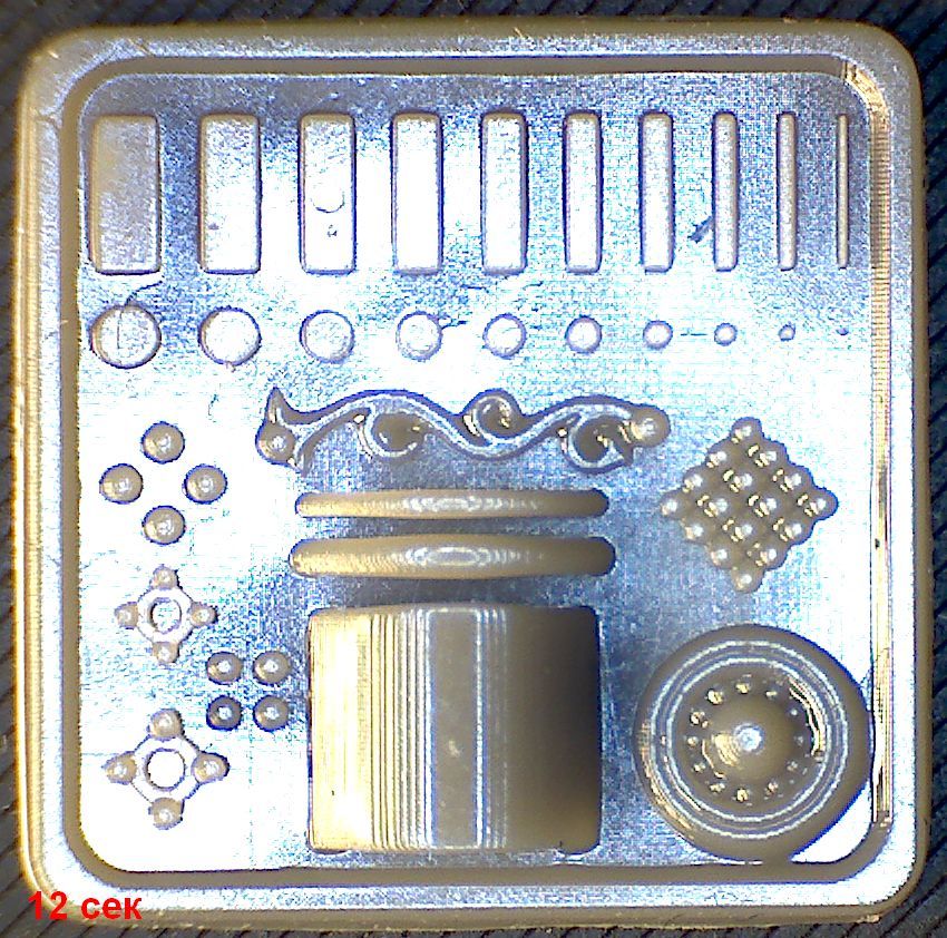 Так же на них хорошо видно если время засветки большое. Из чёткой структуры они превращаются в заплывшую форму. Так как рядом находятся и большой и более мелкий каст, так же можно оценить более тонкие настройки времени засветки.