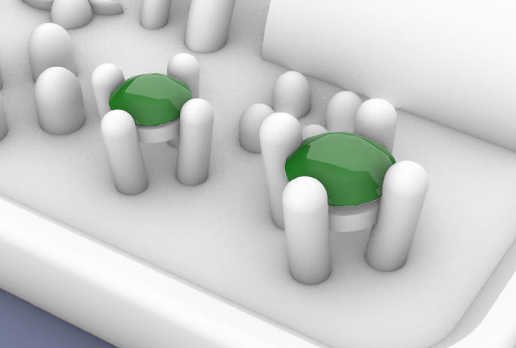 Под призмами находится ряд цилиндров с такими же диаметрами.