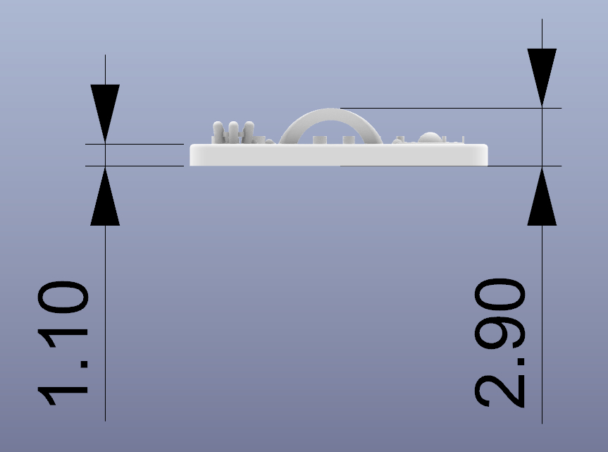 По объёму модель всего 0.23 миллилитра (менее 1 грамма полимера) . Габаритные размеры 15 Х 15 Х 2.9 мм.