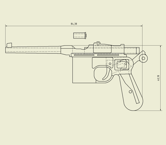 Чертеж - есть практически все для постройки. Изначально Маузер планировался многозарядным, но по прикидкам получалось, что в магазин влезет два, от силы три патрона - игра не стоила свеч.