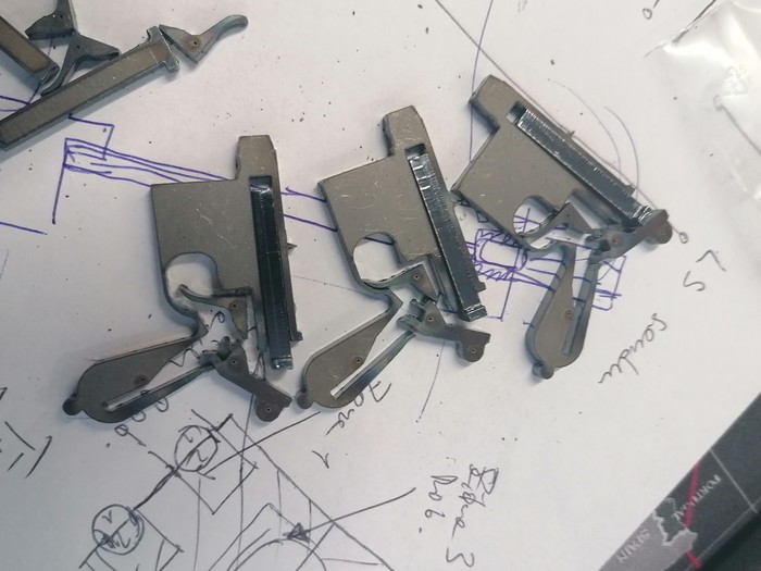 В этот раз я смухлевал и нарезал заготовок основных деталей лазером на работе. Теперь у меня есть запас на десяток маузеров. :)