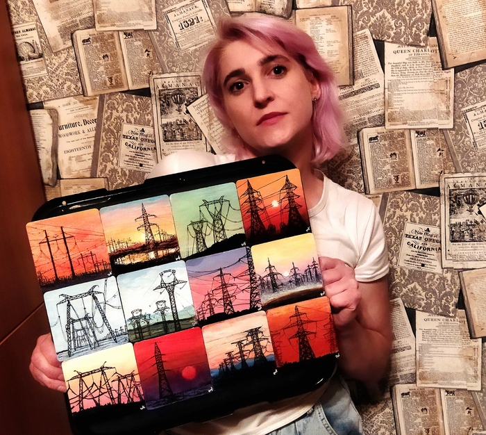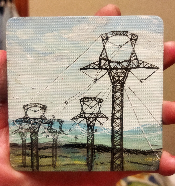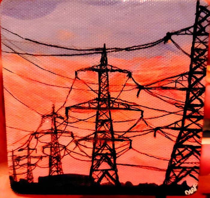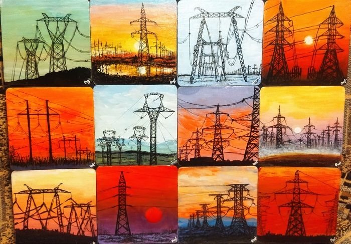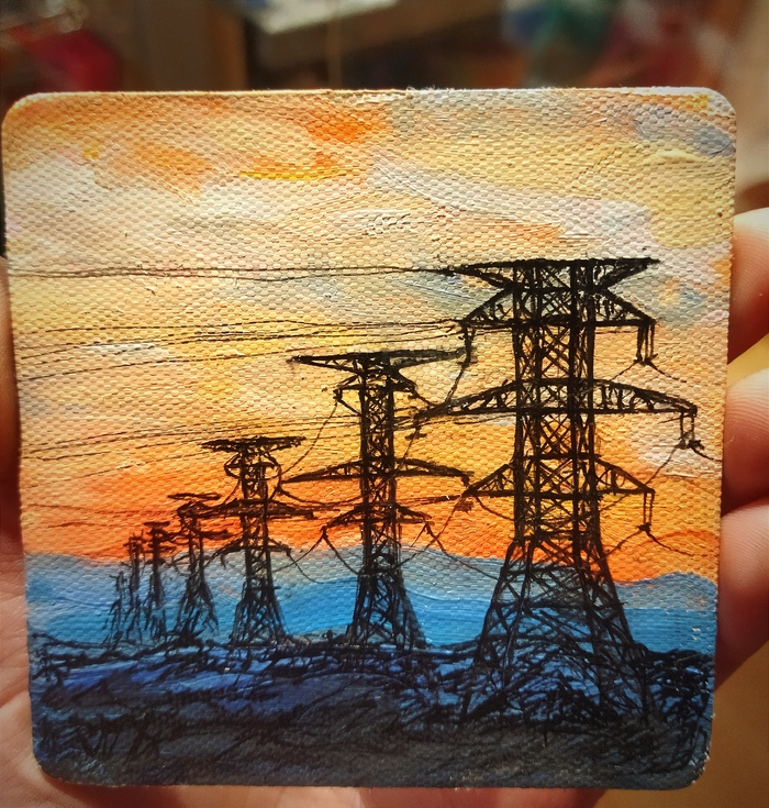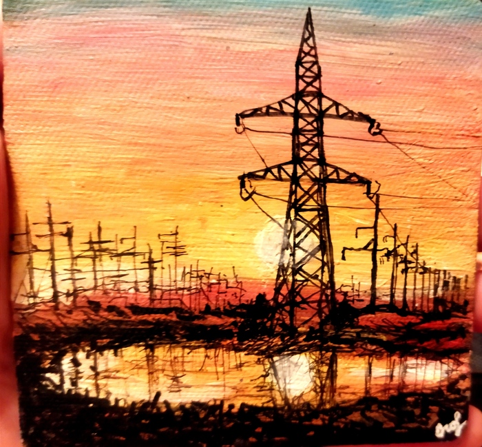 Опоры ЛЭП всегда завораживали меня своим величием, многообразием форм и ,какой-то, космической загадочностью. Плюс, хотелось потренироваться в рисовании прямых линий от руки линерами - с ними имела дело впервые.