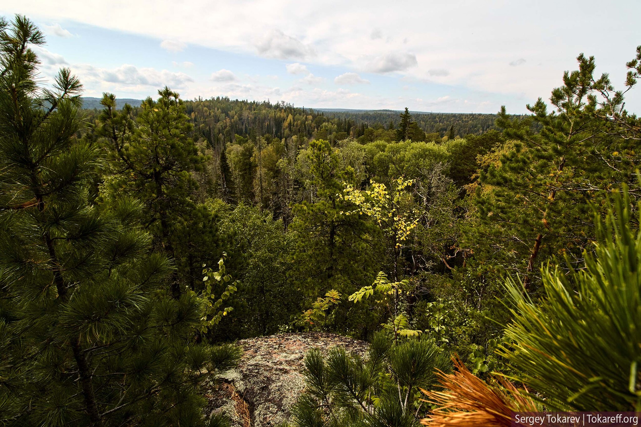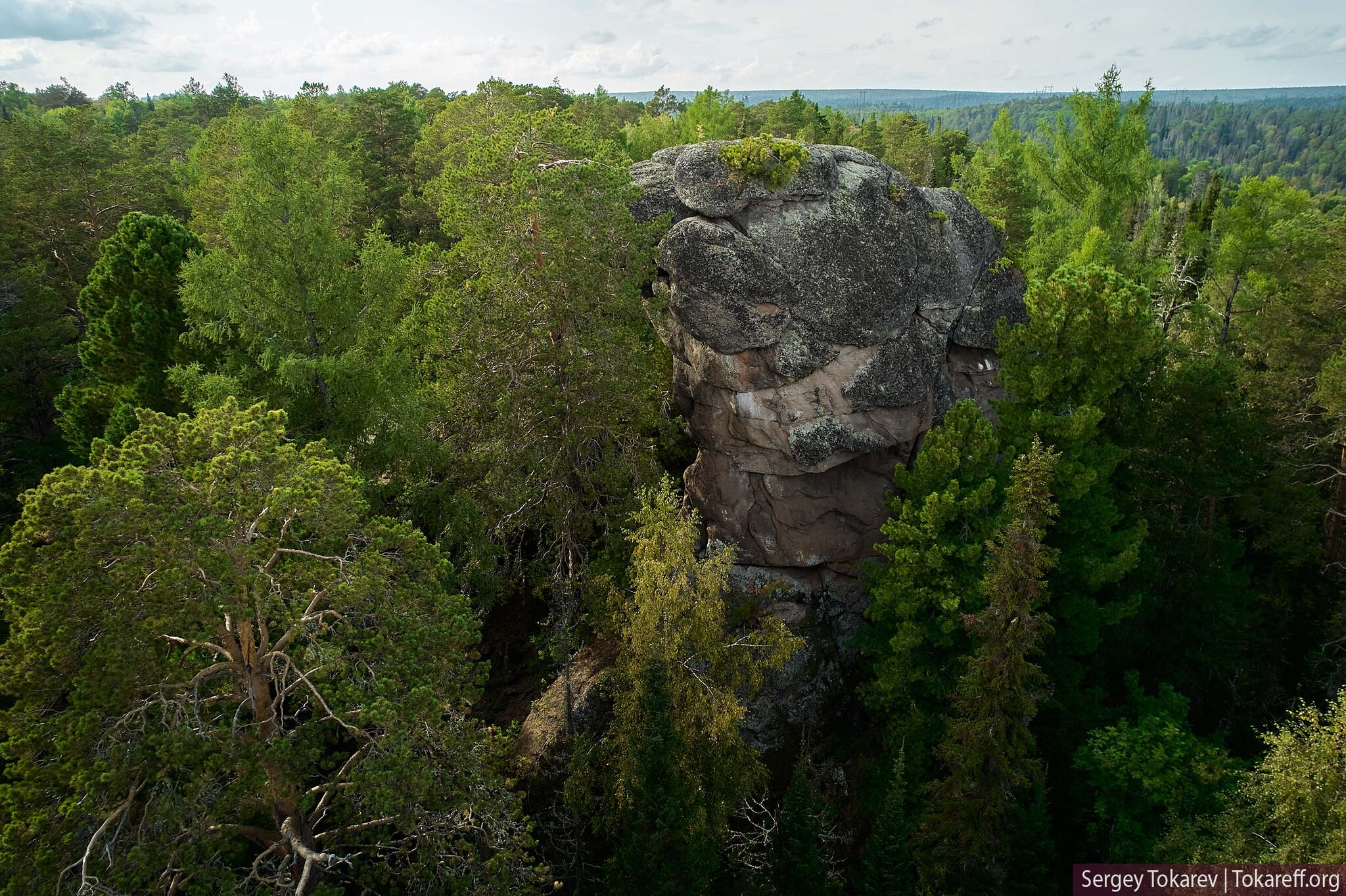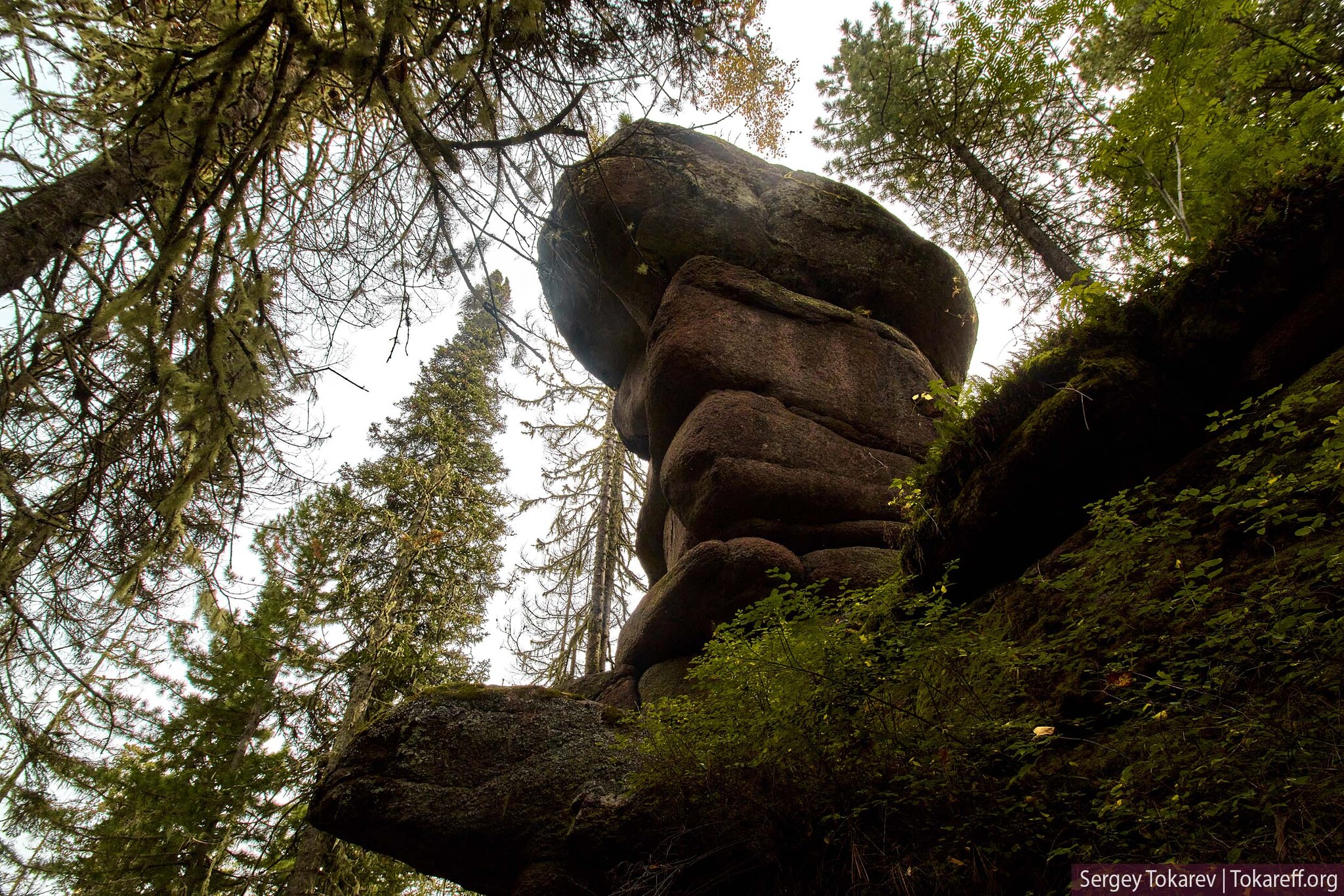 А вот если хотите пройти к дальним скалам «Парус», «Колдуны» и «Галерея», придется запастись терпением. Лес в этом районе когда-то активно поел короед, деревья упали, поэтому тропа идет по бурелому. Надо постоянно перешагивать через стволы.