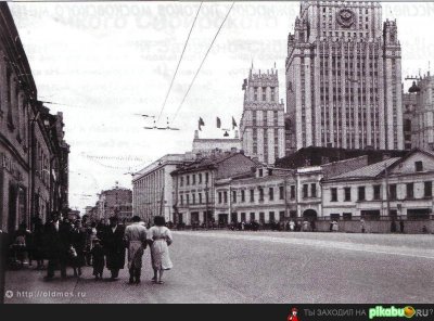 МИД, изначально планировалось построить без шпиля. Потом Сталин решил, что так будет слишком похоже на американские небоскребы. В комментах фото существующего.