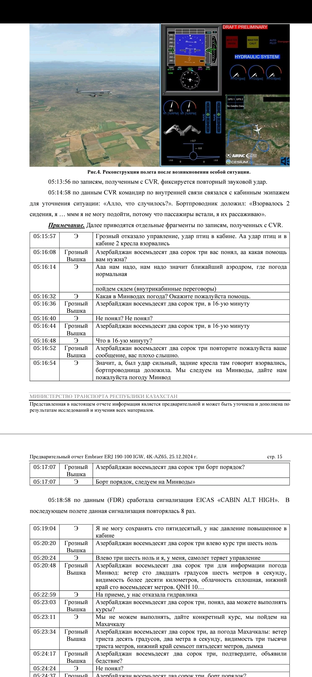 В отчете также приводятся расшифровка разговоров пилотов с диспетчерами, данные об аэропортах и погоде.