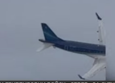 Это кадр перед самым падениам в Актау. Поврежденная сторона самолета находится от оператора.