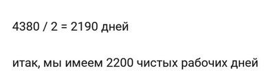 теперь спишем дни когда я не работал, в отпуске я был только один раз, но ещё есть больничные и то время когда я метался по говносервисам, допустим всё вместе это 2 года, это очень много, но пусть так, выходные я пока не считаю, два года это 730 дней