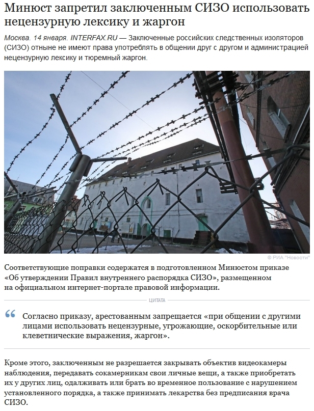RenusAvin Минюст запретил заключенным СИЗО использовать нецензурную лексику и жаргон 10 лет назад Тюрьма Россия Жаргон Мат