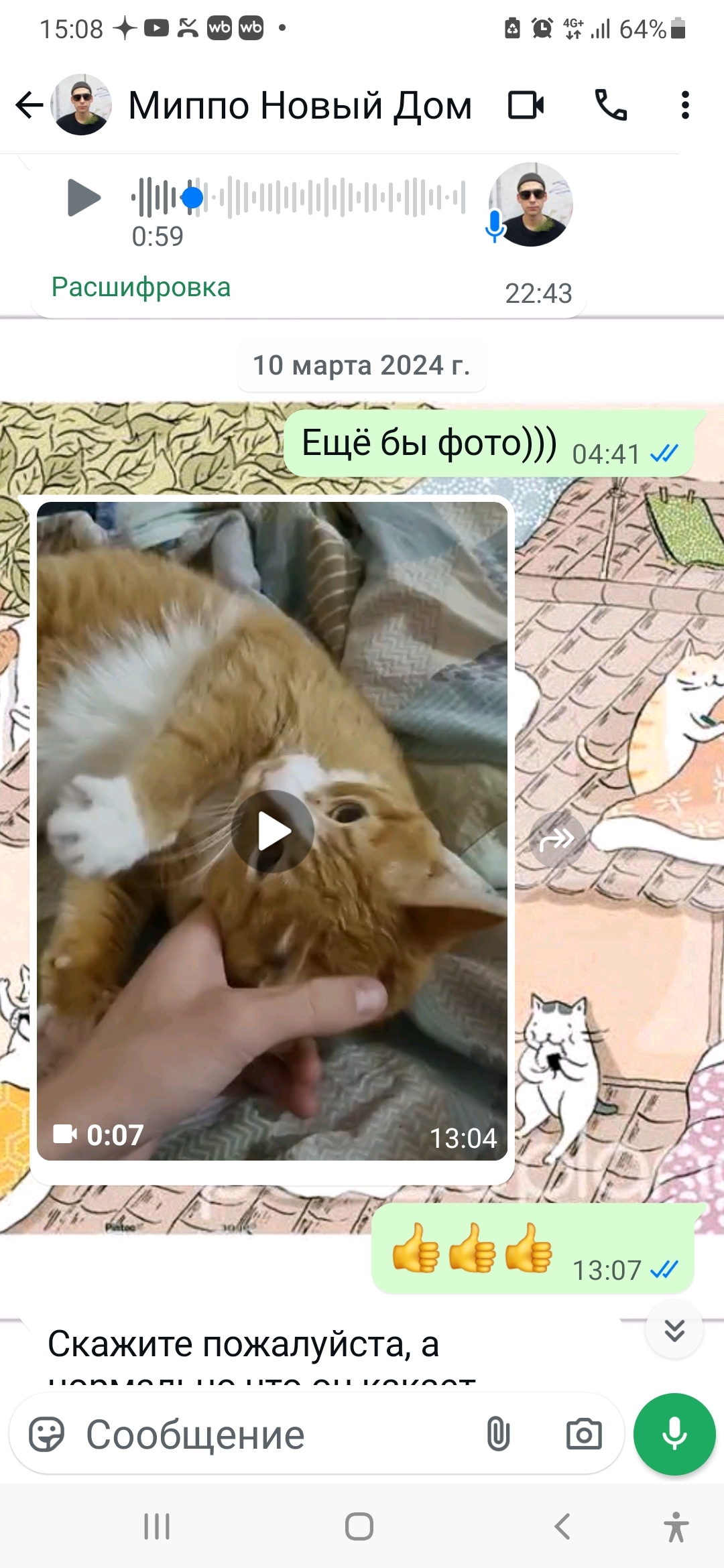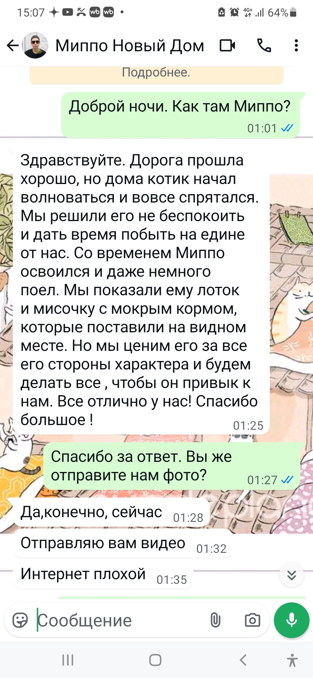 Сегодня о Миппо. Хотя в его семье звали Персик,звали так целый год и пять месяцев, но вернули в приют, с вердиктом: кот громко орет и плачет по ночам, ведет себя странно и от него устали, но обязуются забрать обратно, как только кот исправится...